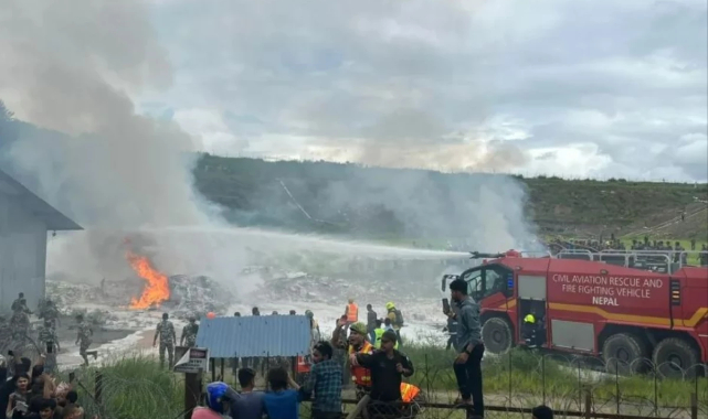 Nepal'de 19 yolcu taşıyan Saurya Havayolları uçağı, Katmandu'daki Tribhuvan Havalimanı'nda kalkış sırasında kaza yapıp alev aldı. Kazada 18 kişi hayatını kaybetti, pilot yaralı kurtuldu.