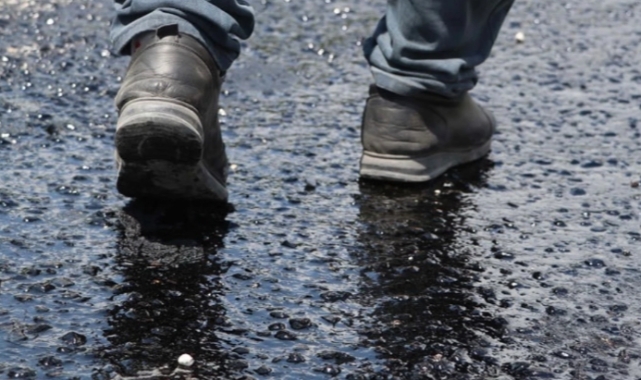 Termometrelerin 40 dereceyi gösterdiği Denizli'de kara yolundaki asfaltta erimeler oldu. Büyük şaşkınlık yaşatan olay sonrası yürümekte güçlük çeken vatandaşların ayakkabıları eriyen asfalta yapıştı.