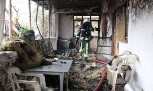 Antalya'da, çocukların kapı önünde sünger yakmasıyla çıkan yangında tek katlı müstakil ev ile evin önünde bulunan Büyükşehir Belediyesi'ne ait sinekle mücadelede kullanılan kamyonet küle döndü. Dumandan etkilenen ev sahibi Fatma Özdemir'e ilk müdahalesi olay yerinde sağlık ekipleri tarafından yapılırken, eşi Mehmet Ali Özdemir ise "Sünger olunca müdahale edemedim, alevler boyumu geçti. Gidecek bir evim yok. 40 yıldır yaşadığım evimi kaybettim" dedi.