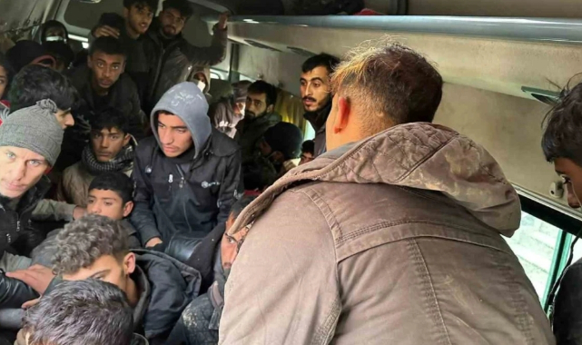 Hatay’da polis ekiplerinin çalışmaları sonucu bir minibüste ve arkasındaki römorkta taşınan 53 kaçak göçmen yakalandı.