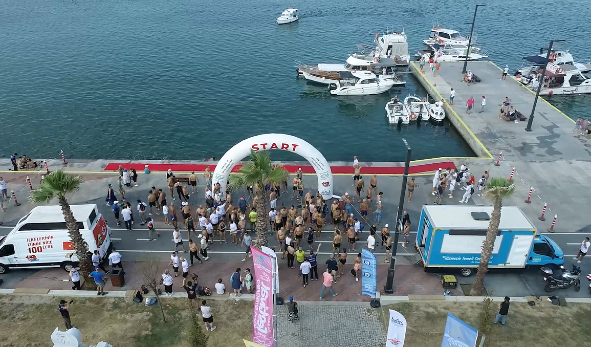 Burcu Çapin: Arkadaşlarım 5.000 metrede 10.000 metrede yüzüyorlar ben bugün biraz kısa yüzdüm ama çok güzel bir sahil ben ilk defa geliyorum duymuştum ve arkadaşların ısrarıyla geldim çok da keyif aldım şimdi deniz çalkantılı olmaya başladı ama ilk girdiğimizde daha güzeldi.