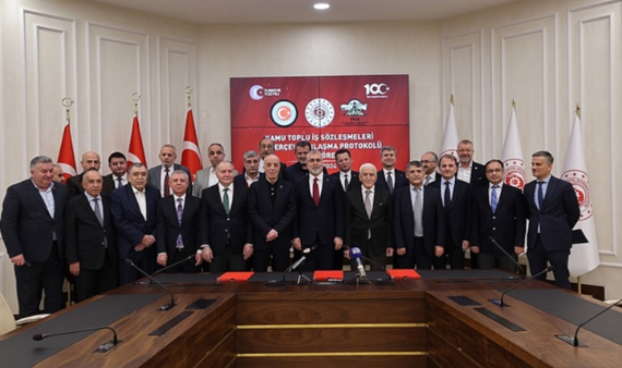 Çalışma ve Sosyal Güvenlik Bakanlığı koordinasyonunda, TÜRK-İŞ ve HAK-İŞ ile Türk Ağır Sanayii ve Hizmet Sektörü Kamu İşverenleri Sendikası (TÜHİS) arasında "Kamu Toplu İş Sözleşmeleri Ek Çerçeve Anlaşma Protokolü" imzalandı.