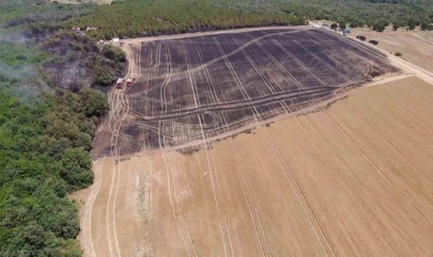 80 dönümlük arazi yangında zarar gördü