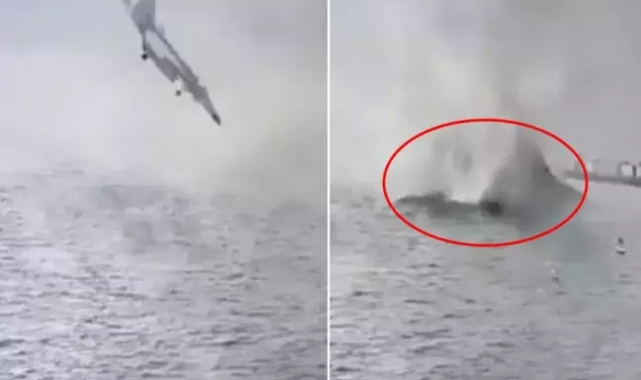 San Diego şehrinde ABD donanmasına ait bir savaş uçağı denize düştü. Kaza anı kameraya saniye saniye yansırken görüntülerde uçağın oldukça hızlı bir şekilde denize daldığı görülüyor.