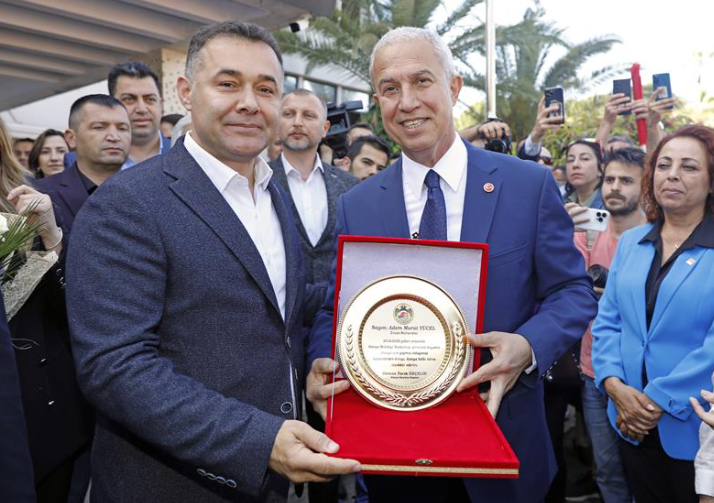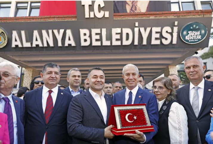 Alanya Belediye Başkanı seçilen ve dün mazbatasını alan Osman Tarık Özçelik, Belediyede düzenlenen devir teslim töreniyle önceki dönem Belediye Başkanı Adem Murat Yücel’den koltuğu devralarak görevine başladı.