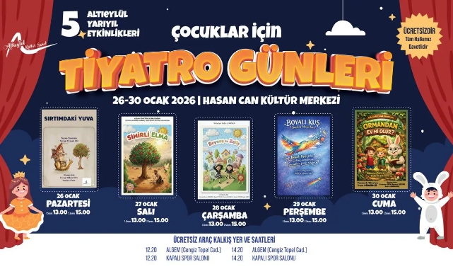 Hasan Can Kültür Merkezi’nde yarıyıl tatili boyunca sahnelenecek ücretsiz çocuk ve yetişkin tiyatro oyunlarıyla Altıeylül’de kültür ve sanat dolu bir tatil yaşanacak. Her yaştan izleyiciye hitap eden program sayesinde çocuklar tiyatroyla tanışma ve sanatı yakından tanıma fırsatı bulurken, yetişkinler de yoğun günlük hayatın stresinden uzaklaşıp keyifli anlar yaşayacak. Altıeylül Belediyesi vatandaşlara ücretsiz servis desteği sağlayacak.