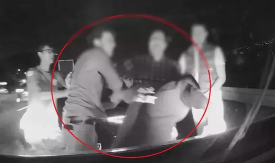 Görüntülerde emniyet şeridinde duran ambulansın önüne, kullandığı otomobilini çeken S.Y.'nin, M.Y. ve diğer oğlu S.Y. (23) ile birlikte indiği, baba ile büyük oğlu S.Y.'nin cep telefonu kamerasını açarak ambulansa ilerledikleri görüldü. Ambulansın arkasında hasta olup, olmadığını kontrol eden baba ve oğulları, o anları cep telefonu kamerasıyla da kayıt altına alırken, ambulansın sürücü tarafına geçen baba S.Y.'nin, sürücü Karasulu'nun boğazını sıktığı iddia edildi.ART ARDA YUMRUK ATTI