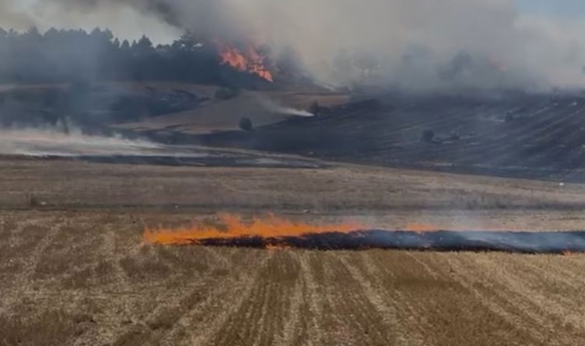 Kütahya'da anız yangını kısa sürede ormanlık alana sıçrada.