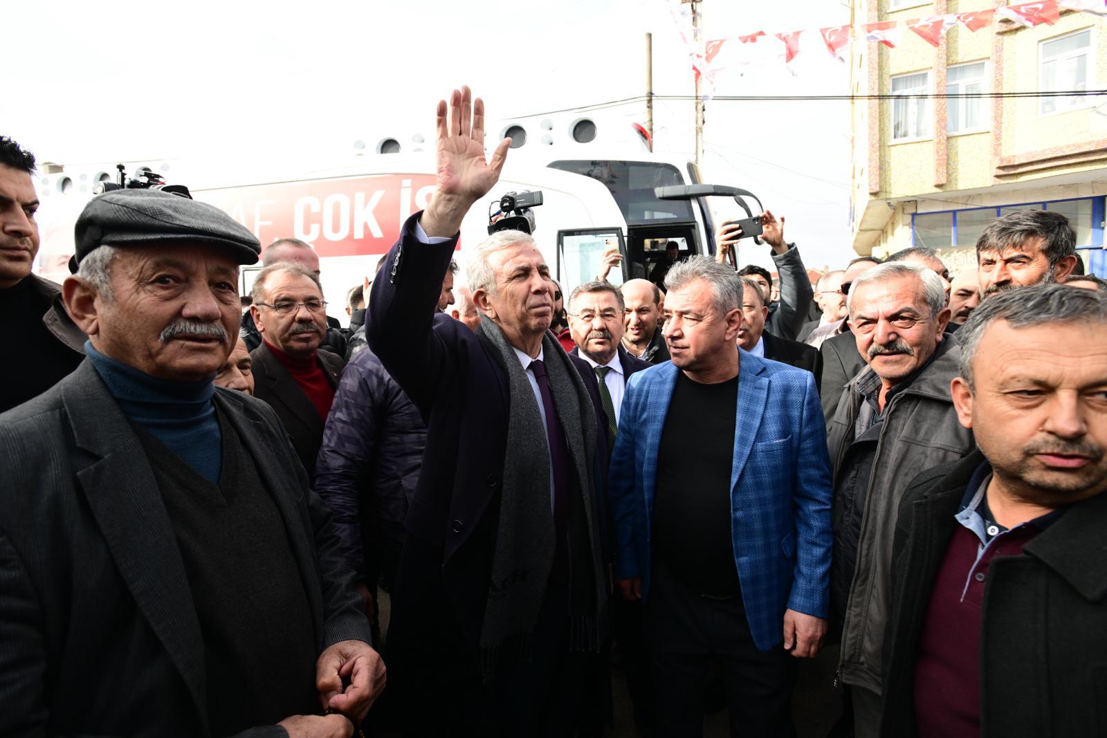 Ankara Büyükşehir Belediyesi olarak Haymana’da gerçekleştirdikleri hizmetleri anlatan Yavaş, konuşmasına şöyle devam etti: “Haymana'da yıllardır yapılmayan ASKİ yatırımlarını tek tek yaptık. İtfaiye binası yaptık. 27 mahallenin su sorunu giderildi. Emirler Mahallesi’nde 50 yıllık su sorununu çözüldü. Haymana'nın altyapısı dururken siz gidip de proje yapıyorum diye o paraları başka yere harcayacaksınız.Hangisi farz? Evinizde 2 saat su kesilse hemen ASKİ’yi ararsınız. Yıllardır suyu olmayan köyleri niye yapmadınız şimdiye kadar? Yıllardır kanalizasyonu açıktan akan köyleri niye bunları yapmadınız?Pahalı pahalı Ankara'da suyu sattılar. Ama oyu aldıktan sonra Haymana'yı unutup gittiler. Bu insanlar nasıl yaşar hiçbirisini görmediler. Beldeler kapatıldıktan sonra itfaiyeler geri çekilmiş. Haymana’da 51 adet köye yangın için tanker gönderdik.”“PROJESİ YOK DERLER, BİZİM YAPTIKLARIMIZI TEKRAR EDERLER”“Projesi yok derler, bizim yaptıklarımızı tekrar ederler” diyen Yavaş, Ankara’da 32 bin emekliye destek olduklarını belirtti. Yavaş, “Onlar da emekliye para vereceklermiş. Emekliye para ödemesi gereken yer hükümet. Demek ki siz hükümetin emekliyi ezdiğini fark ettiniz. 10 bin liraya 70-80 yaşındaki insan ikinci iş yapamaz. Neden bunların maaşları arttırılmıyor?Ben başladım Türkiye'de tekim. Şu anda 32 bin tane emekliye nakit desteği veriyorum. Doğal gaz desteği veriyorum. Üşütmüyorum onları. 200 bin aileye, üç yıldır doğalgaz desteği veriyorum. Bakın hükümet vermiyor. Mansur Yavaş veriyor. Kendi yaşadığı kentteki hiç kimsenin açlıktan ölmesine, soğuktan donmasına, çocukların yatağa aç girmesine izin vermiyor.But vereceklermiş. Biz et veriyoruz, onlar but verecekmiş. Baktık faaliyet raporları var kendi web sayfalarında yazıyor. Geçen yıl bir ay iki kişiye geçtiğimiz Ekim Kasım ayında da 11 kişiye vermişler. Keçiören'de biz 50 bin kişiye destek oluyoruz, 5 bin tane emekliye destek oluyoruz.Ve şu anda siz belediye başkanısınız. Şimdi niye vermiyorsunuz? Alıştık artık 1 Nisan'dan sonra, 1 Nisan'dan sonra hele bir verdiğiniz oyları görelim diyor. Siz vaat ediyorsunuz. Burada bu icraatı 3 yıldır yapan insan var” diye konuştu. “ÇALIYOR AMA ÇALIŞIYOR LAFINI TOPRAĞIN ALTINA GÖMDÜK”Beş yıldır ihaleleri açık bir şekilde yaptıklarını belirten Yavaş, “Hakkınızı koruduk. Paranızın çalınmasına izin vermedik. Ankara'da artık ‘Çalıyor ama çalışıyor’ lafını toprağın altına gömdük. Yani biri kul hakkı yiyecek ve siz de bunu çalışıyor diye mazur göreceksiniz. Var mı inancınızda böyle bir şey? Lafa geldiği zaman biz hesabımızı öbür dünyada veriyoruz diyorlar.Net söylüyorum bu dünyada hesabını veremeyen öbür dünyada zaten asla vermez. 5 yıl boyunca sizler bize güvendiniz. Bizler de bize güvenenlerin başını eğecek hiçbir işin içinde olmadık” ifadelerini kullandı. “BİZİM FELSEFEMİZDE AYIRMA YOK”Haymana halkına “Seçimlerden sonra biz başkaları gibi bırakıp gitmeyeceğiz” sözünü veren Yavaş, “Seçilip gitti, bir daha gelmedi diyebilir mi hiç kimse bana? Haymana'dan geçen dönem az oy aldık. Kimi ayırdık? Bir Allah'ın kulunu ayırmadık. Elimizden geleni yapalım, dedik. Bizim felsefemizde ayırma yok.Televizyonlarda görüyorsunuz, bazı belediye başkanları ‘Oy vermezseniz hizmet gelmez’ diyor. Benden önceki de aynısını söylüyordu. Kim oy verirse önce ondan başlarım diyordu. Öyle bir şey yok. Adaletli, vicdanlı, merhametli davranmak lazım. Nerelerin acil sorunu varsa oradan başlamak lazım.Burada Haymana'da Sındıran Köyü’nün kanalizasyonu yokken sırf başka yerde daha fazla oy ver diye oraya mı hizmet edeceğiz? Öncelikle söz veriyorum Ankara'dan bütün köylerde açıktan akan kanal kalmayacak, musluktan suyu akmayan köy de kalmayacak. En büyük proje bu” sözleriyle konuşmasını sonlandırdı. Mansur Yavaş, Haymana SKM açılışının ardından Gölbaşı ilçesinin Oyaca Mahallesi’ne giderek vatandaşlarla buluştu.