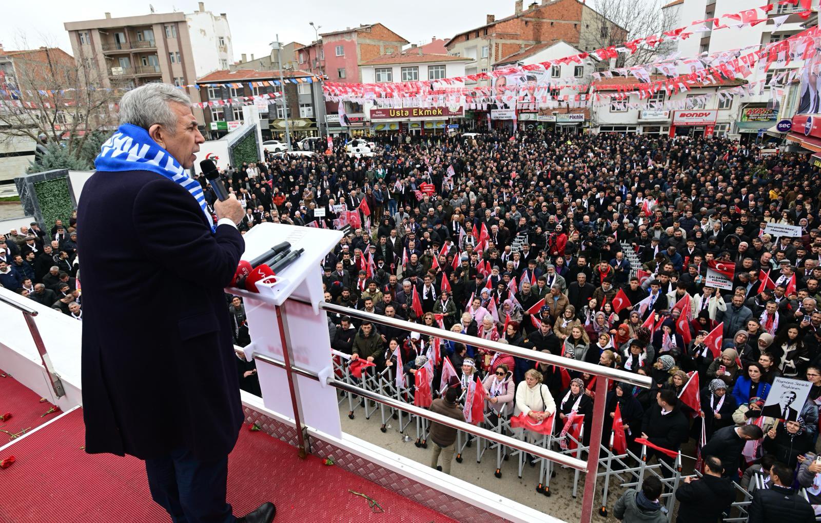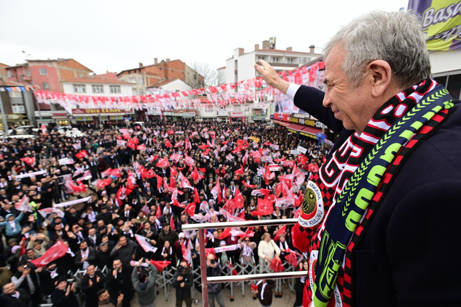 Ankara Büyükşehir Belediye Başkan Adayı Mansur Yavaş’ın Haymana Seçim Koordinasyon Merkezi’nin açılışı Şehitler Meydanı’nı dolduran halkın katılımıyla gerçekleşti. Yavaş, “Adaletli, vicdanlı, merhametli davranmak lazım. Nerelerin acil sorunu varsa oradan başlamak lazım.Burada Haymana'da Sındıran Köyü’nün kanalizasyonu yokken sırf başka yerde daha fazla oy ver diye oraya mı hizmet edeceğiz? Öncelikle söz veriyorum; Ankara'nın köylerinde açıktan akan kanal kalmayacak, musluktan suyu akmayan köy de kalmayacak. En büyük proje bu” dedi.Cumhuriyet Halk Partisi (CHP) Ankara Büyükşehir Belediye Başkan Adayı Mansur Yavaş, “Az Laf Çok İş” sloganıyla başladığı 31 Mart 2024 Mahalli İdareler Seçimleri için çalışmalarını aralıksız sürdürüyor. Yavaş, 9’uncu Seçim Koordinasyon Merkezi’ni (SKM) Haymana’da açtı.CHP’nin Haymana Belediye Başkan Adayı Levent Koç ile birlikte yerel seçim çalışmalarının yürütüleceği SKM’nin açılışı Şehitlik Meydanı’nda halkın yoğun katılımıyla gerçekleşti.“İşimiz Gücümüz Ankara”, “Kavgasız Gürültüsüz Bir Ankara”, “Haymana Seninle Başkanım”, “Ankara’nın Huzuru Mansur Yavaş”, “Haymanalıyım Bana Mansur Gerek” yazılı pankartların yer aldığı açılışta Mansur Yavaş coşkulu kalabalığa karanfil dağıttı. “HAYMANA’YA ÖVÜNEREK SEVE SEVE GELDİM” Şehitler Meydanı’nı dolduran coşkulu kalabalığa “Demek ki insan seçimde verdiği sözleri tutup hizmet edince böyle karşılanıyormuş” diyerek konuşmasına başlayan Mansur Yavaş, seçimlerden sonra en az 10 kez Haymana’ya geldiğini belirtti. Yavaş, “Haymanalı alışkın değil.Büyükşehir Belediye Başkanı oyları alır, bir daha seçimden seçime gelir. Afet oldu geldim, cenaze oldu geldim. Her şeyinizle bizzat ilgilendim. Gelirken de 1 tane minibüs, 1 şoför, 1 tane de korumayla geldim. Ne çakar, ne konvoy hiçbirisi yok. Çünkü ben Haymana'ya, hemşehrilerimin yanına geliyorum. Hiçbirini ayırmadım ki niye çekinip de korumalarla, konvoylarla geleceğim. Kardeşlerimin yanına geliyorum, övüne övüne, seve seve geldim” ifadelerini kullandı. “EN BÜYÜK PROJEM ANKARA HALKINI ZENGİN ETMEK” 2019 yılında en büyük projesinin “Ankara halkını zengin etmek” olarak açıkladığını anımsatan Yavaş, “Benim çılgın projem yok. Benim halkın parasını çöp projelere gömecek param yok.Ben en büyük projeyi Ankara halkını zengin etmek olarak ilan etmiştim. ‘Ankara halkından alacağımı Ankara halkına harcayacağım’ demiştim” diyerek, Haymana’da hayata geçirilen kırsal kalkınma desteklerini anlattı. Haymana’da 9 bin çiftçiye 3 bin ton tohum, 4 bin yüz çiftçiye mazot, bin 300 çiftçiye sıvı gübre, 2 bin 200 çiftçiye sebze fidesi desteğinde bulunduklarını kaydeden Yavaş, “1100 adet oluk, 42 kilometre sulama borusu, 12 kilometre kapalı sulama sistemine geçiş hep bu dönemlerde oldu ki çiftçimiz daha rahat üretsin, daha az maliyetli üretsin, para kazansınlar diye” ifadelerini kullandı. Eski dönemlerde paketlerle yapılan sosyal desteğe ‘Başkent Kart’ ile son verdiklerini vurgulayan Yavaş, sosyal yardım alan ailelere et ve doğal gaz desteği, çocuklarına da eğitimde fırsat eşitliği sağlamak için kantin, servis, kırtasiye ve abonman desteği sağladıklarını belirtti. Yavaş, Başkent Kart ile ayrıca esnafı da kalkındırdıklarını belirterek, Haymana’da 4 bin aileye destekte bulunduklarını kaydetti. “TEK BAŞINA HAYMANA ABAT OLURDU”Proje yapıyorum deyip Ankara halkının parasını çöp projelere gömmediklrini vurgulayan Yavaş, “Belediyecilik budur. Proje yapıyorum deyip, halkın parasını çöp projelere gömüp, faydası olmayan işlere para yatırıyorlar. Ankara girişindeki çıkışındaki kapıların kime ne faydası var?Oraya harcanan paralarla tek başına Haymana abat olurdu” diye konuştu.