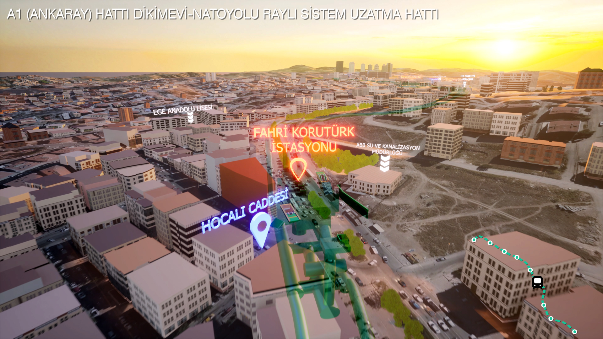 Hat; Abidinpaşa, Aşık Veysel, Tuzluçayır, General Zeki Doğan, Fahri Korutürk, Cengizhan, Akşemsettin ve Natoyolu olmak üzere 8 ayrı istasyondan oluşacak.