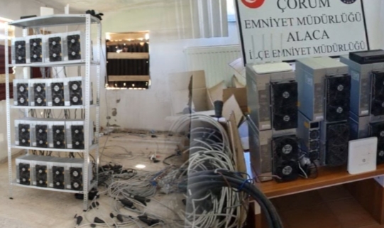 Çorum İl Emniyet Müdürlüğü Siber Suçlarla Mücadele Şube Müdürlüğü ile Alaca İlçe Emniyet Müdürlüğü ekipleri, S.A.’nın uzun süredir kullanılmayan tekstil atölyesini 6 ay önce kiralayıp, içerisine yerleştirdiği cihazla sanal ortamda Bitcoin ürettiğini tespit etti. Ekipler, 2 ay süren teknik ve fiziki takip sonrası bugün operasyon düzenledi. Yapılan aramalarda, bir tanesi 10 bin dolar olan 16 Bitcoin üreten cihaz ve buna bağlı internet bağlantı sistemi ele geçirildi. Ayrıca, S.A.’nın kaçak elektrik çekerek cihazları çalıştırdığı tespit edildi. Şüpheli gözaltına alınırken, olayla ilgili soruşturma sürüyor.Öte yandan S.A.’nın elektronik sistemi belli aralıklarla tek başına kurduğu öğrenildi.