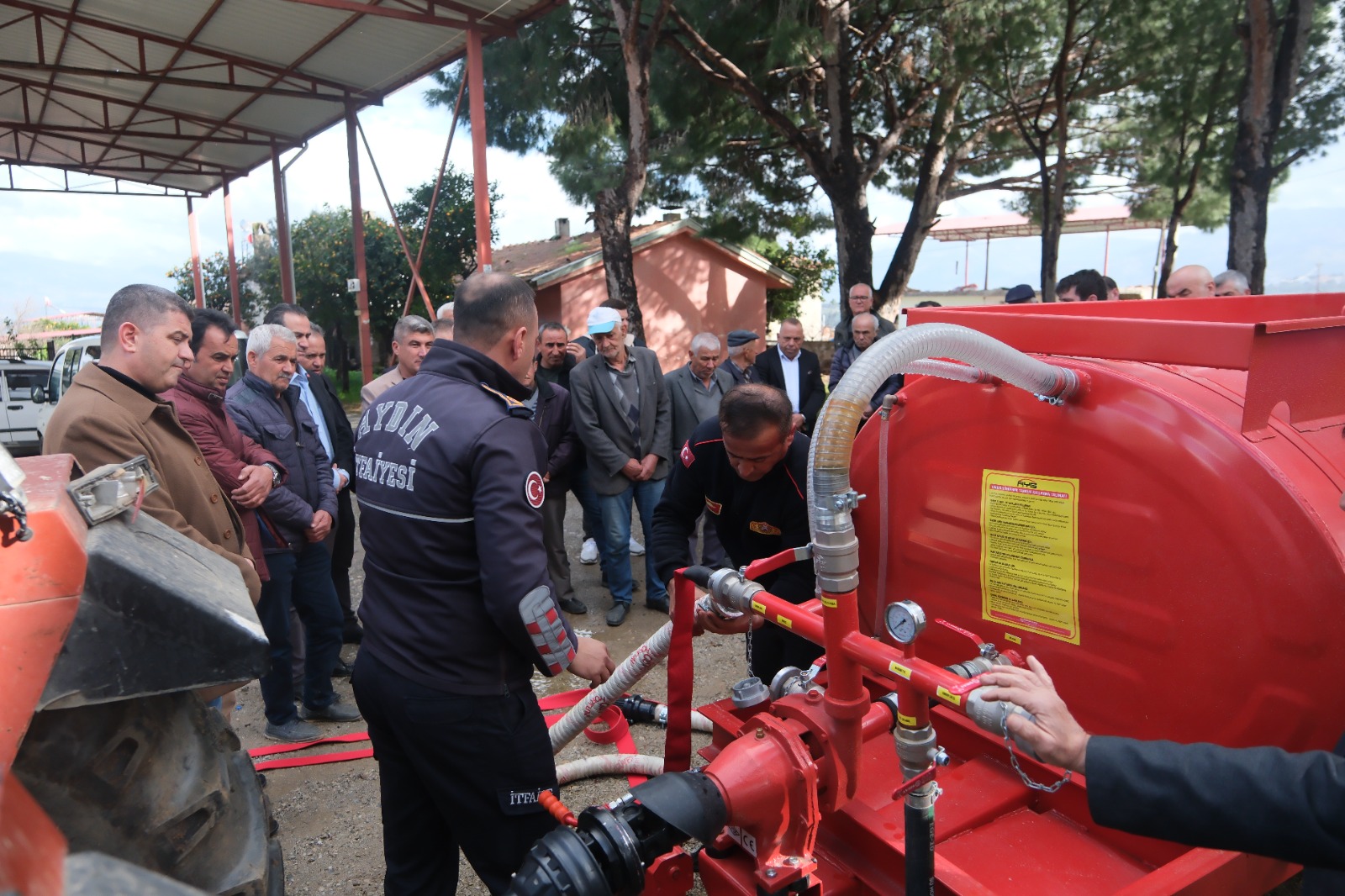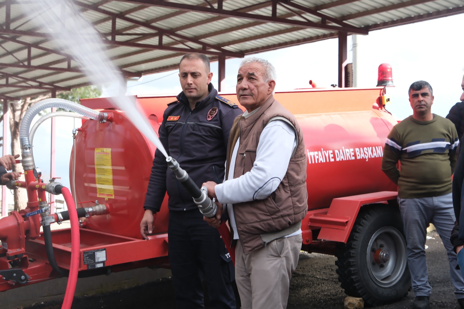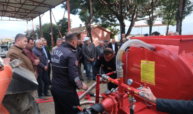 3 ton kapasiteli bu araçlar, traktörler çalışır haldeyken güç beslemesini alıyor ve adeta bir itfaiye arazözü işlevi görüyor.Büyükşehir’in bu desteği ile yangın söndürme tankeri bulunan her mahalle, itfaiye arazözü işlevi gören bir araca sahip oluyor.