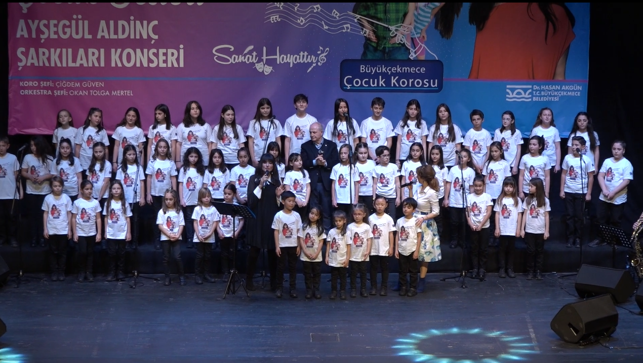 Koro şefliğini Çiğdem Güven’in, orkestra şefliğini Okan Tolga Mertel’in yaptığı ‘Büyükçekmece Çocuk Korosu’ pop müziğinin değerli ismi Ayşegül Aldinç’in şarkılarını seslendirerek sanatseverlere harika bir müzik dinletisi yaşattı.