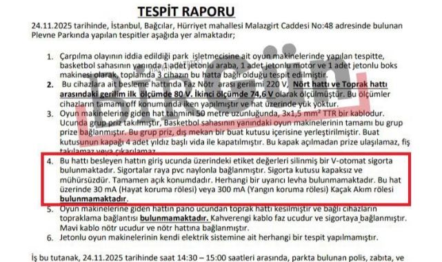 AKP'li Bağcılar Belediyesi'ne ait bir parkta, 5 çocuğun elektrik akımına kapılarak yaralandığı korkunç kazada, hayati öneme sahip bir güvenlik parçasının parkta bulunmadığı ortaya çıktı. Sadece 500 TL değerindeki "kaçak akım rölesi"nin olmaması, facianın temel nedeni olarak gösteriliyor.