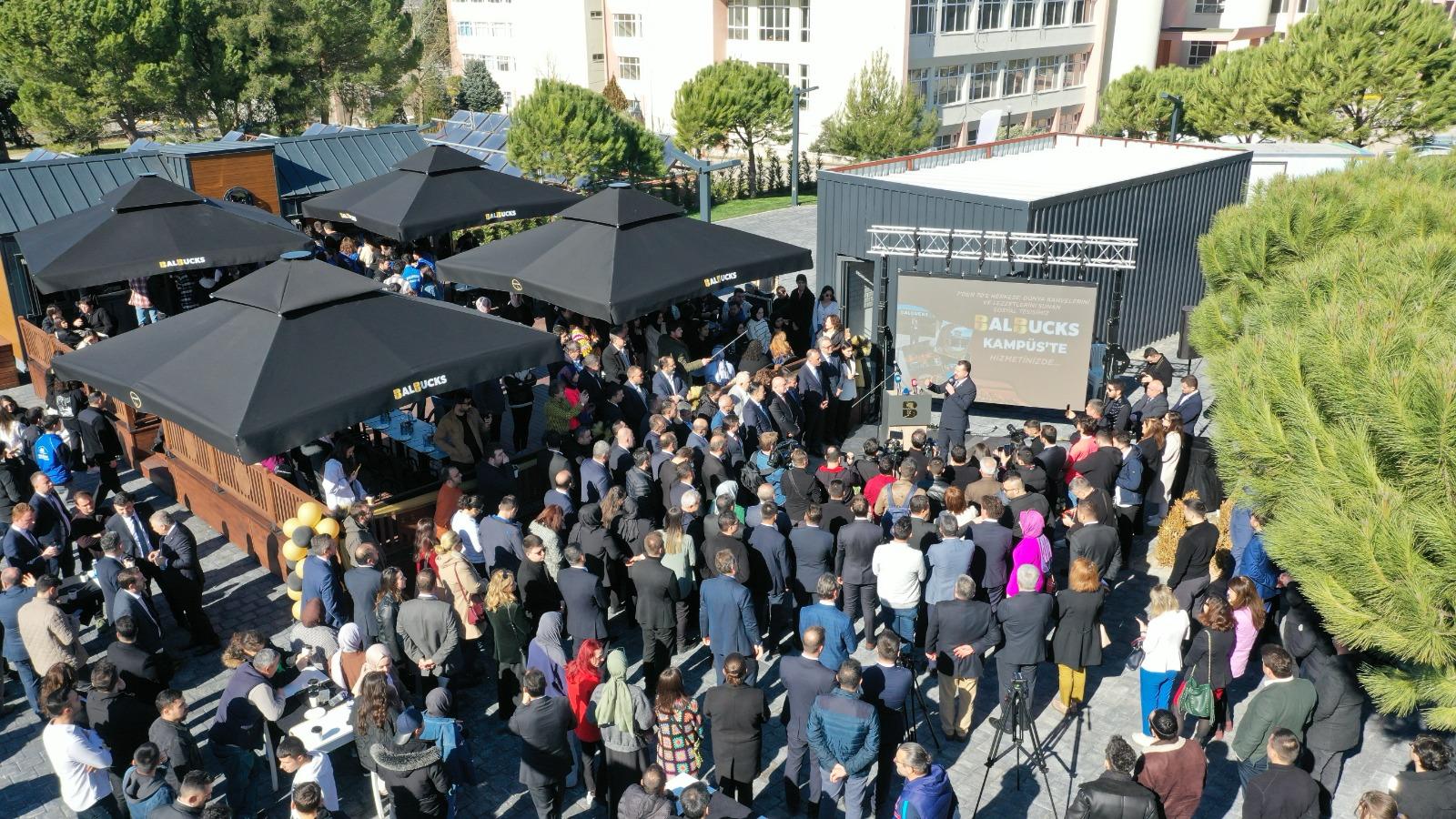 Taze ve kaliteli ürünleri uygun fiyata öğrencilere sunan cep dostu BalBucks, Balıkesir Büyükşehir Belediye Başkanı Yücel Yılmaz tarafından BAÜN Çağış Kampüsü’ne açıldı. BalBucks’ın kampüste açıldığını duyan öğrenciler yine BalBucks önünde uzun kuyruklar oluşturdu. Sömestr tatili dönüşü Balıkesir Üniversitesi öğrencilerine BalBucks sürprizi yapan Balıkesir Büyükşehir Belediye Başkanı Yücel Yılmaz, bugün öğrenciler ile birlikte BalBucks’ın resmi açılışını gerçekleştirdi. Balıkesir Büyükşehir Belediye Başkanı Yücel Yılmaz, Zağnos Paşa Camisi Meydanı’ndaki BalBucks’ın ikinci şubesini de Balıkesir Üniversitesi Çağış Kampüsü’ne açtı.Dünyaca ünlü sıcak-soğuk içecekler, sandviç ve tatlılardan oluşan lezzetli ürünleri uygun fiyat politikasıyla vatandaşlara nezih bir ortamda sunması dolayısıyla Türkiye’nin birçok noktasında adından sıkça söz ettiren BalBucks’ın açılışına; Balıkesir Valisi İsmail Ustaoğlu, Balıkesir Büyükşehir Belediye Başkanı Yücel Yılmaz, AK Parti İl Başkanı Mehmet Aydemir, Balıkesir Üniversitesi Rektörü Prof. Dr. Yücel Oğurlu, Balıkesir Gençlik ve Spor İl Müdürü Adem Özalp, AK Parti Altıeylül Belediye Başkan Adayı Mesut Eray ve üniversite öğrencileri katıldı.HAYALİMİZ GERÇEK OLDUBalBucks’ın açılış törenine katılan gençler, BalBucks’ın öğrenciler için büyük bir şans olduğunu ve bu imkânı sağlayan Başkan Yücel Yılmaz’a teşekkür ettiklerini söyledi. Uzun süredir BalBucks’ın hayalini kurduklarını belirten Balıkesir Üniversitesi Rektörü Prof. Dr. Yücel Oğurlu, BalBucks’ın kampüste olmasının kendileri için gurur verici olduğunu dile getirdi. ‘Biz en çok gençlerin belediyesiyiz’ diyen Balıkesir Büyükşehir Belediye Başkanı Yücel Yılmaz da ‘Gençlerimiz bizler için çok kıymetli.Balıkesir’in üniversite şehri olarak anılmasını istiyoruz. BalBucks’ımız üniversitemize hayırlı uğurlu olsun. Bugün çay kahve öğrencilerimize Yücel abilerinden…” dedi.ÖĞRENCİLERİMİZ İÇİN ÖNEMLİ BİR İCRAATBalBucks’ın öğrencilere ve gençlere çok güzel dokunan bir hizmet olduğuna vurgu yapan Balıkesir Valisi İsmail Ustaoğlu, “Öğrenci için ne önemlidir. Ulaşımın ucuz olması önemli başkanımız bunun müjdesini verdi.Çay kahvenin ucuz olması önemli. O imkânları sağlayan BalBucks’ın da açılışını yapıyoruz. Hayırlı olsun, Belediye Başkanımıza teşekkür ediyorum” dedi.