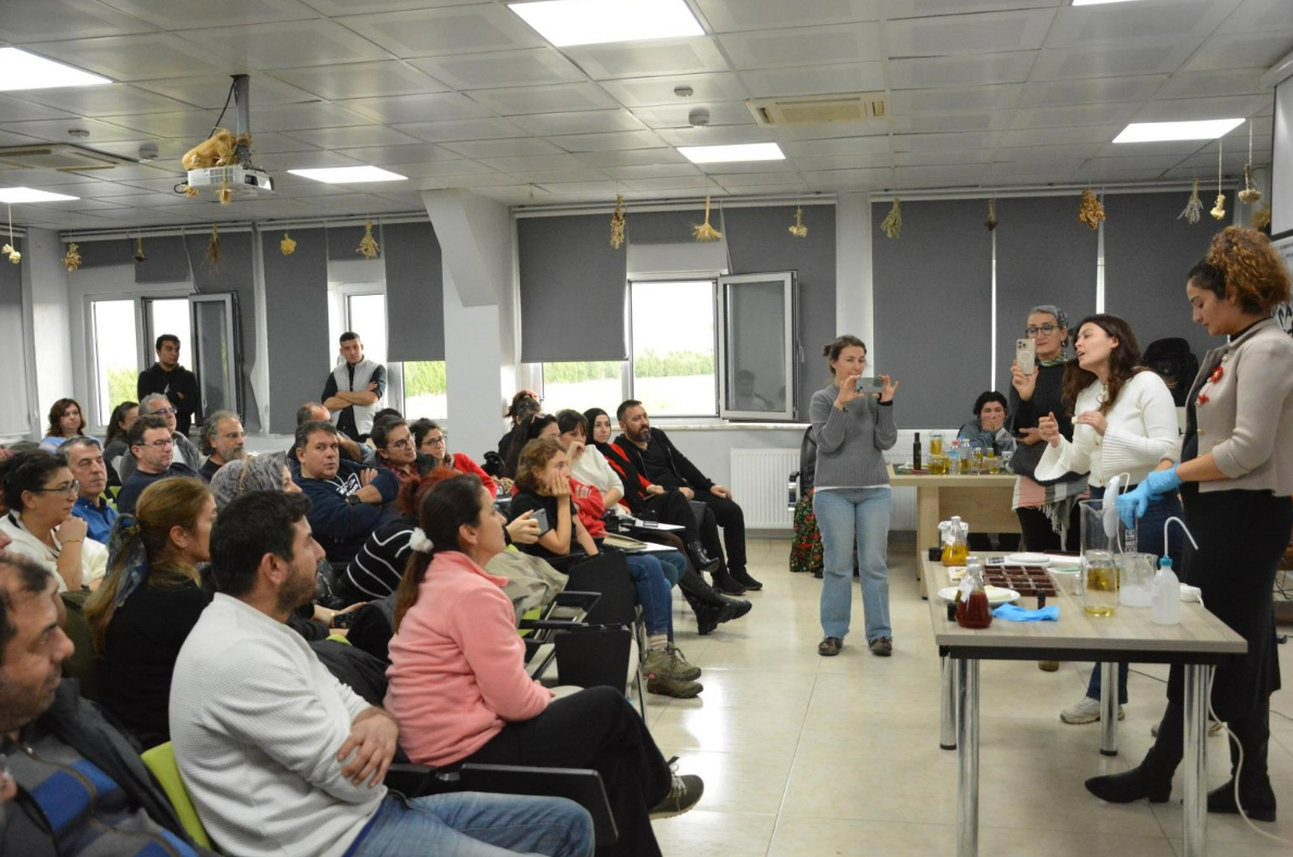 Eğitimin üçüncü gününde zeytin sektörünü yerinde tanımak amacıyla teknik geziler düzenlendi. Tarım makineleri ile zeytinyağı üretim tesisleri ziyaret edilerek üretim aşamaları sahada incelendi ve süreçler hakkında kapsamlı bilgiler alındı.