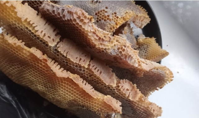 Bunun üzerine köye giden ve bal toplama anını kaydeden Yörük, "Gelip petekleri topladım. Valizden yaklaşık 8 kilogram bal çıktı." ifadelerini kullandı.