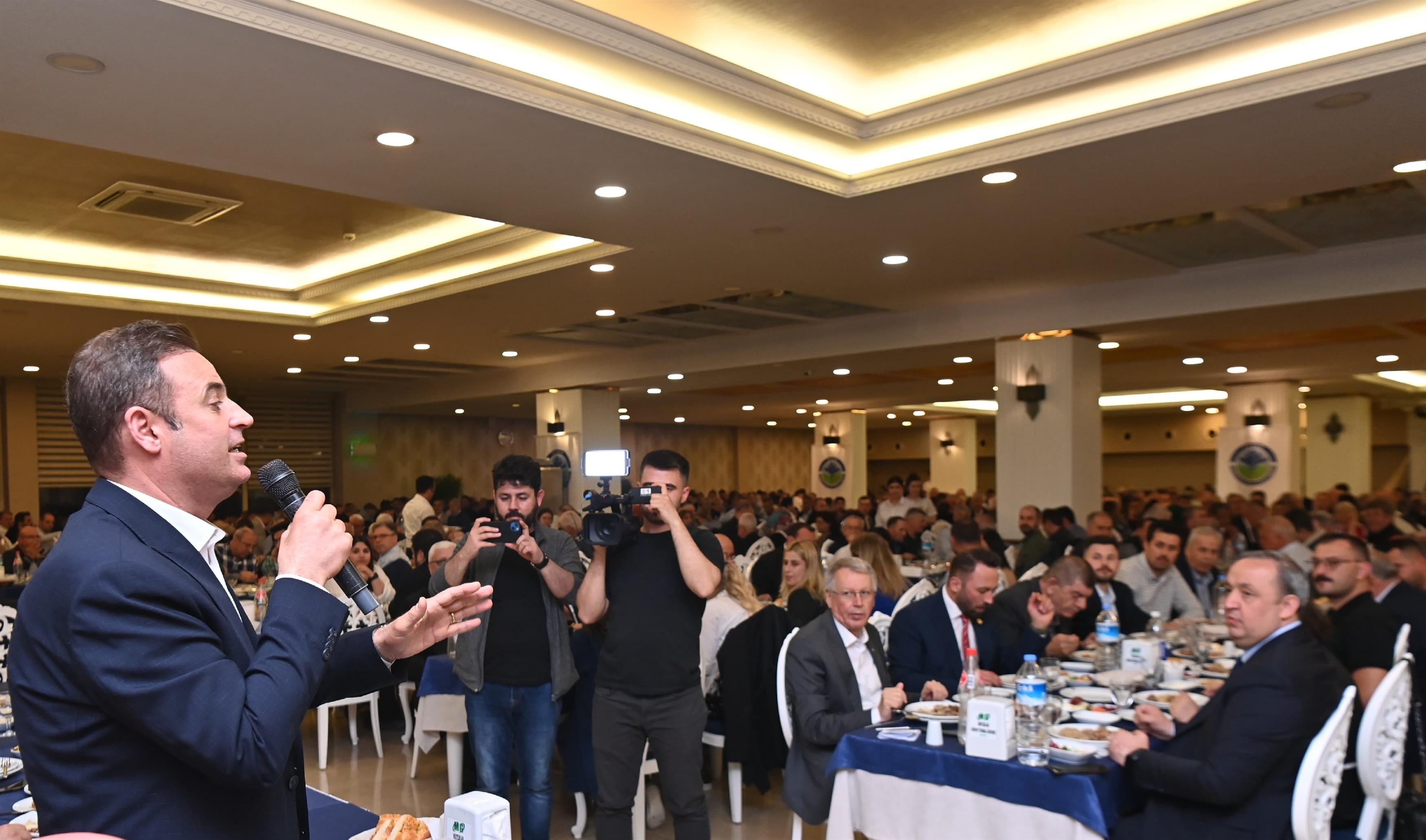 Balıkesir Büyükşehir Belediye Başkanı Ahmet Akın, seçimin ardından ilk ilçe ziyaretini baba ocağı Gönen’e yaptı. Gönen Belediyesi’nin iftarına konuk olan Başkan Akın, sonrasında Cumhuriyet Meydanı’nda vatandaşlara buluştu; destekleri için teşekkür etti, yaklaşan Ramazan Bayramı’nı kutladı.‘BERABERLİĞİMİZ DAİM OLSUN’Balıkesir Büyükşehir Belediye Başkanı Ahmet Akın, seçimin ardından ilk ilçe ziyaretini baba ocağı Gönen’e gerçekleştirdi. Gönen Belediye Başkanı İbrahim Palaz’ın ev sahipliğinde; meclis üyeleri, muhtarlar ve çok sayıda vatandaşın katılımıyla gerçekleştirilen iftar programında selamlama konuşması yapan Başkan Ahmet Akın, “Çok sevgili ailem, birlik ve beraberliğimiz daimi olsun. Şimdiden hepinize iyi bayramlar diliyorum” dedi.Başkan Ahmet Akın; Cumhuriyet Halk Partisi Balıkesir İl Başkanı Erden Köybaşı, Balıkesir Milletvekili Serkan Sarı, Gönen Belediye Başkanı İbrahim Palaz ve Gönen Kaymakamı Arslan Yurt’un da katıldığı iftarın ardından Büyükşehir Belediyesi’nin Gönen’deki ek hizmet binasını ziyaret ederek Cumhuriyet Meydanı’nda vatandaşlarla bir araya geldi. DESTEKLERİ İÇİN GÖNEN’E TEŞEKKÜRGönenli hemşerileri tarafından büyük bir coşku ile karşılanan Başkan Ahmet Akın, 31 Mart’taki destekleri için Gönenlilere teşekkür etti. “Seçimde omuz omuza tarihi bir zafere imza attık” diyen Başkan Akın, yaklaşan bayram sevincini paylaşmak için Gönen’de olduklarını belirterek vatandaşların Ramazan Bayramını kutladı.