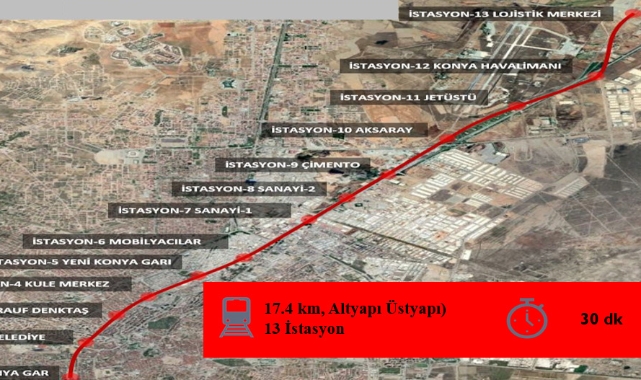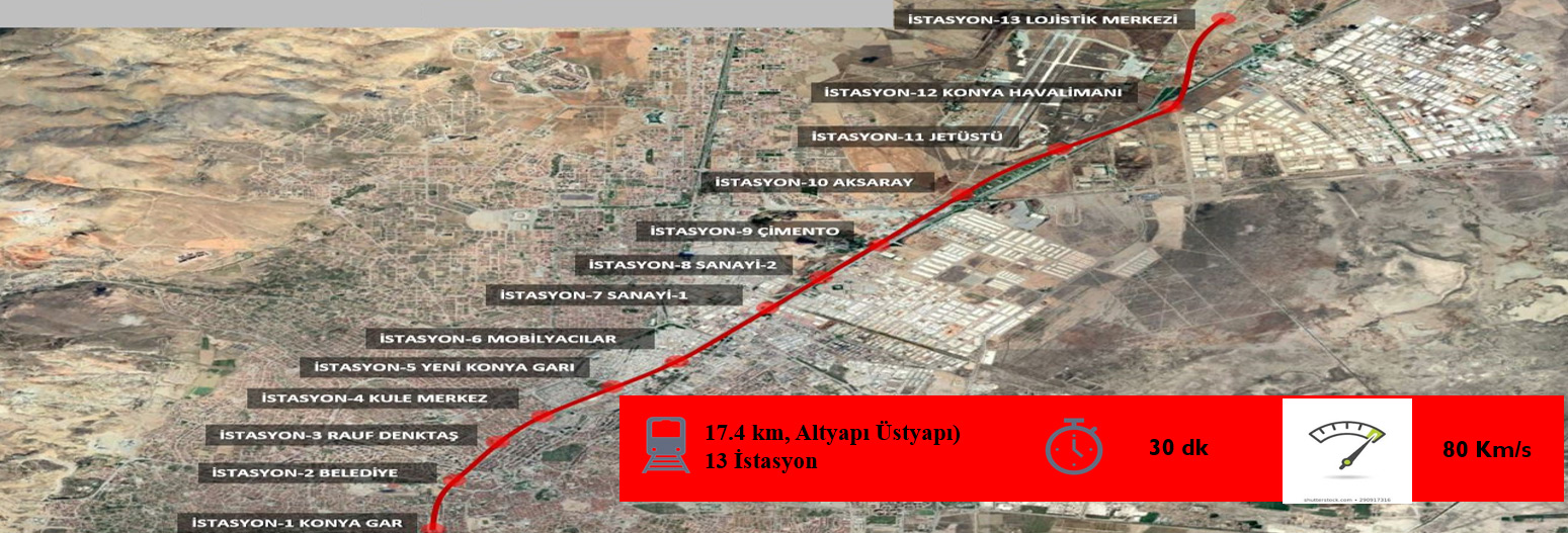 Ulaştırma ve Altyapı Bakanlığı ile Konya Büyükşehir Belediyesi tarafından şehre kazandırılacak KONYARAY Banliyö Hattı’nın ilk etabı olan Konya Gar-Kayacık Lojistik Merkezi arasındaki 17,4 kilometrelik bölümde çalışmalar yoğun şekilde sürüyor.
