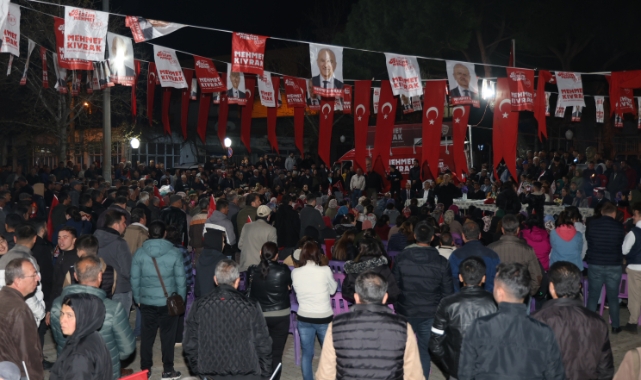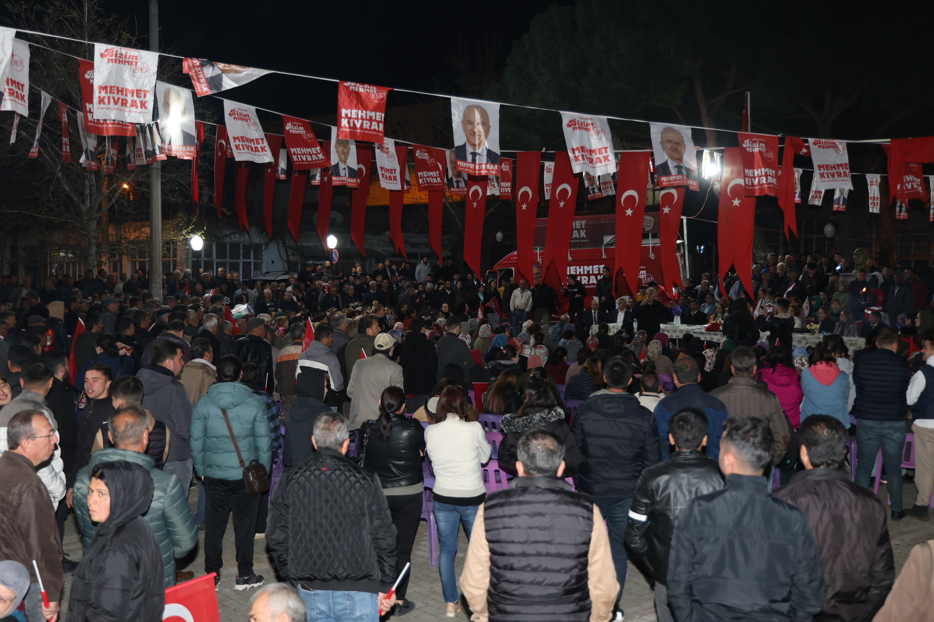 Çine Belediye Başkanı Mehmet Kıvrak, seçim çalışmaları kapsamında ziyaret ettiği Akçaova Mahallesi’nde vatandaşlar tarafından Türk bayrakları, meşaleler ve çiçeklerle karşılandı. Halkın yoğun katılımı ve ilgisiyle ziyaret, mitinge dönüştü.Her akşam başka bir mahallede vatandaşlarla buluşmaya devam eden Çine Belediye Başkanı Mehmet Kıvrak’ın dün akşamki adresi Akçaova Mahallesi oldu.Akçaova halkının coşku ve heyecanla karşıladığı Başkan Kıvrak, her kesimi ilgilendiren projelerini paylaştı.Kendisini heyecanla dinleyen kalabalığa seslenen Başkan Kıvrak, Akçaova’ya yeni yeşil alanlar, kazandıracağını belirtti.