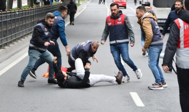 İstiklal Caddesi'nin ara sokaklarından Taksim Meydanı'na yürümek isteyen gruba polis müdahale etti. Pankart açıp yürüyen grup engellenerek 20 kişi gözaltına alındı. BEŞİKTAŞ'TA YÜRÜMEK İSTEYEN GRUBA MÜDAHALEBeşiktaş'tan Taksim Meydanı'na yürümek isteyen gruba polis müdahale etti. Pankart açıp slogan atarak yürüyen grup, gözaltına alındı.