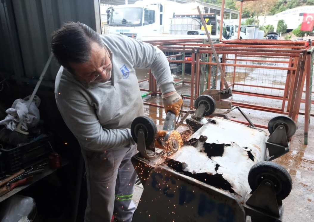 Bodrum Belediyesi, çevreye duyarlı belediyecilik anlayışı kapsamında sürdürülebilirlik ve geri dönüşüm faaliyetlerini yaygınlaştırmayı sürdürüyor.Temizlik İşleri Müdürlüğü’ne bağlı ekipler, hurdaya ayrılan malzemeleri yeniden değerlendiren çalışmalar yürütürken, kullanım ömrünü tamamlamak üzere olan araç ve gereçleri de onararak tekrar hizmete kazandırıyor.Konacık Mahallesi’ndeki Temizlik İşleri Müdürlüğü Kademesinde yapılan çalışmalar doğrultusunda, çeşitli nedenlerle kullanılamaz hâle gelen demirler ve çit telleri toplanarak çöp konteynerlerinin çevresine yerleştirilen yeşil çitli konteyner kafeslerine dönüştürülüyor.Bu uygulama sayesinde çevre düzeni iyileştirilirken kötü görüntülerin de önüne geçiliyor. 2025 yılı içerisinde 171 konteyner kafesi tamir edildi, 93 adet yeni kafes ise tamamen geri dönüşüm malzemelerinden üretildi.Pratik ve Verimli Çalışma İçin Özel Üretim Araçlar