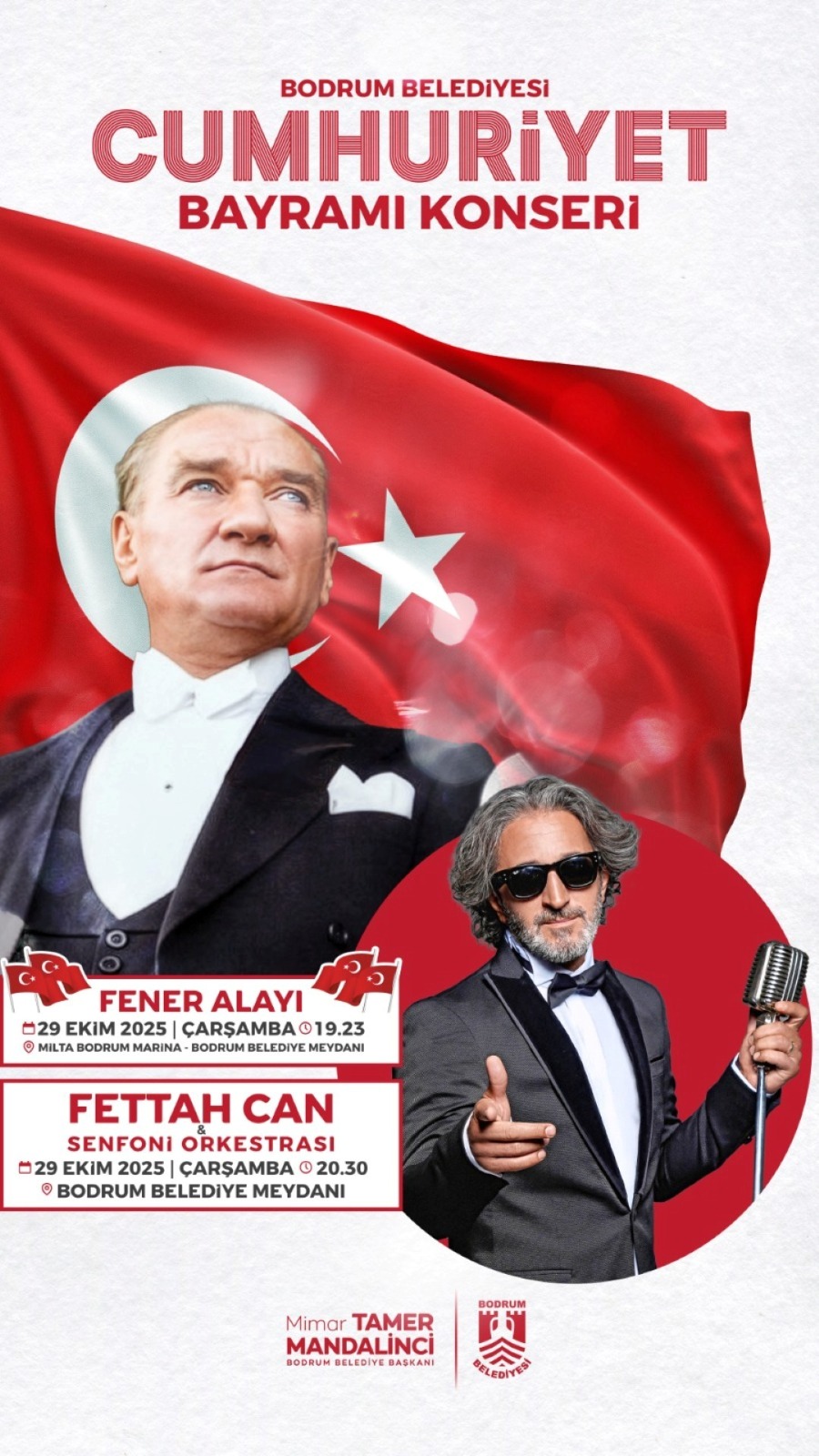 29 Ekim Cumhuriyet Bayramı, Bodrum’da yapılacak resmi program ve Fettah Can konseriyle kutlanacak.