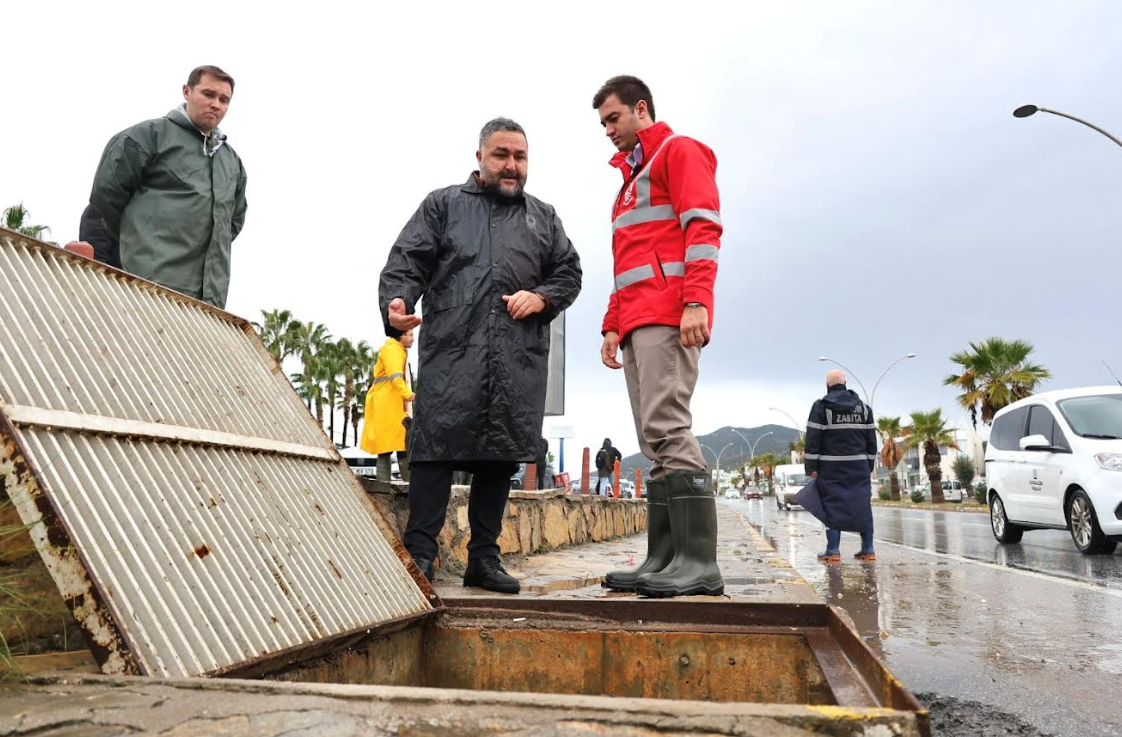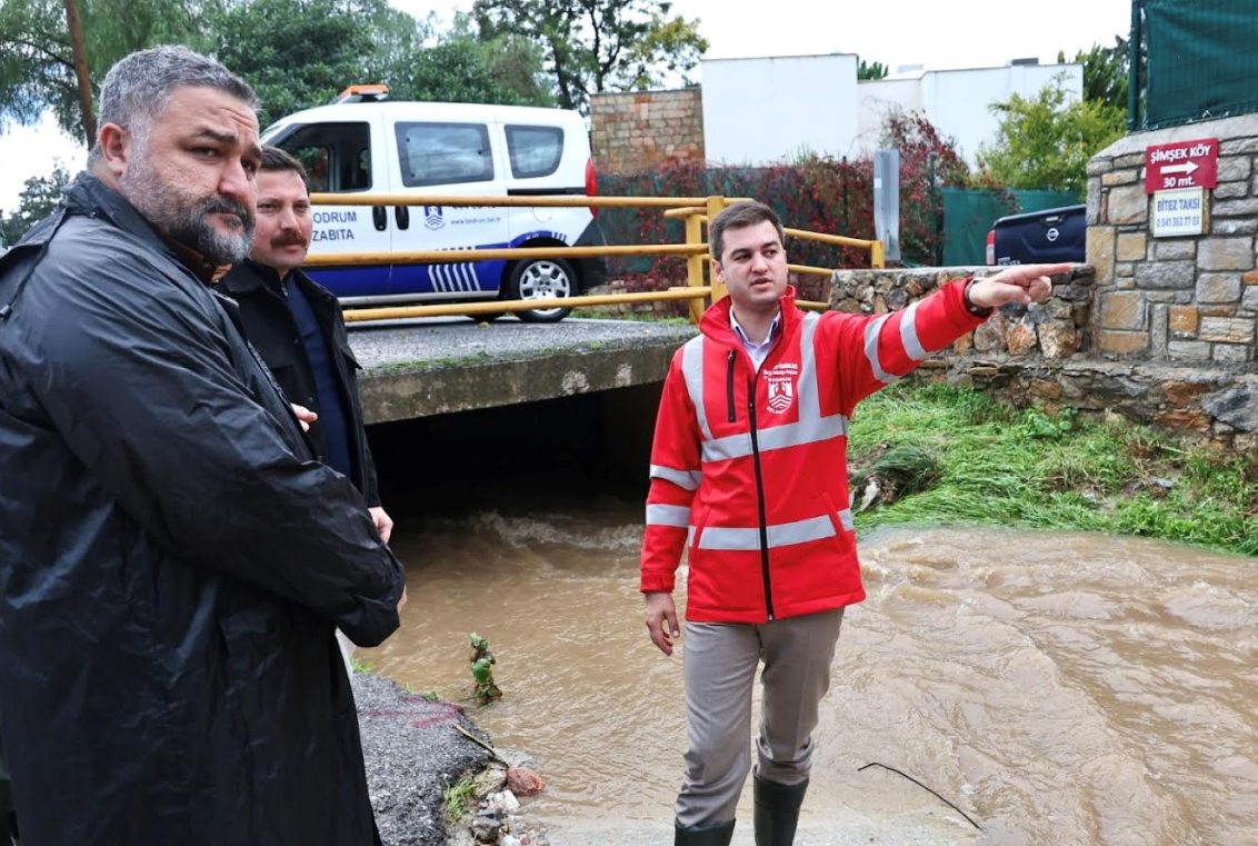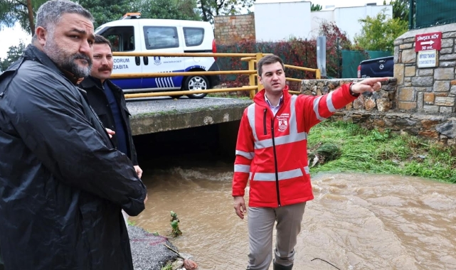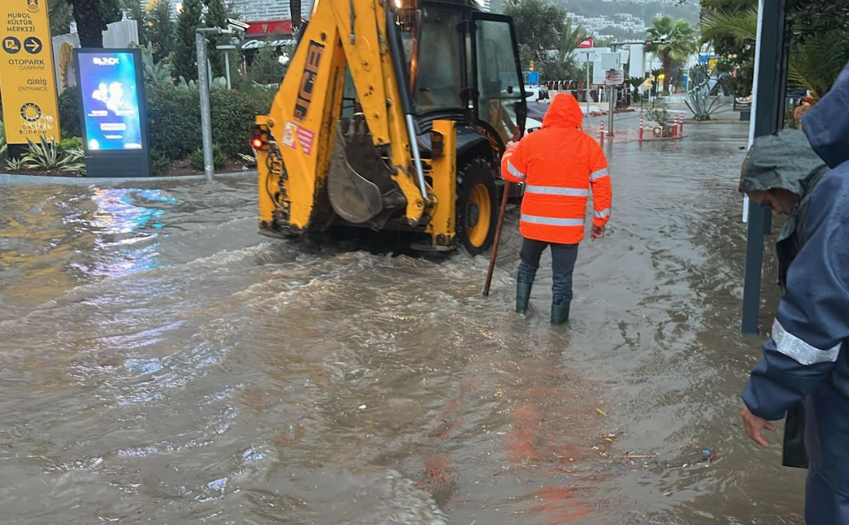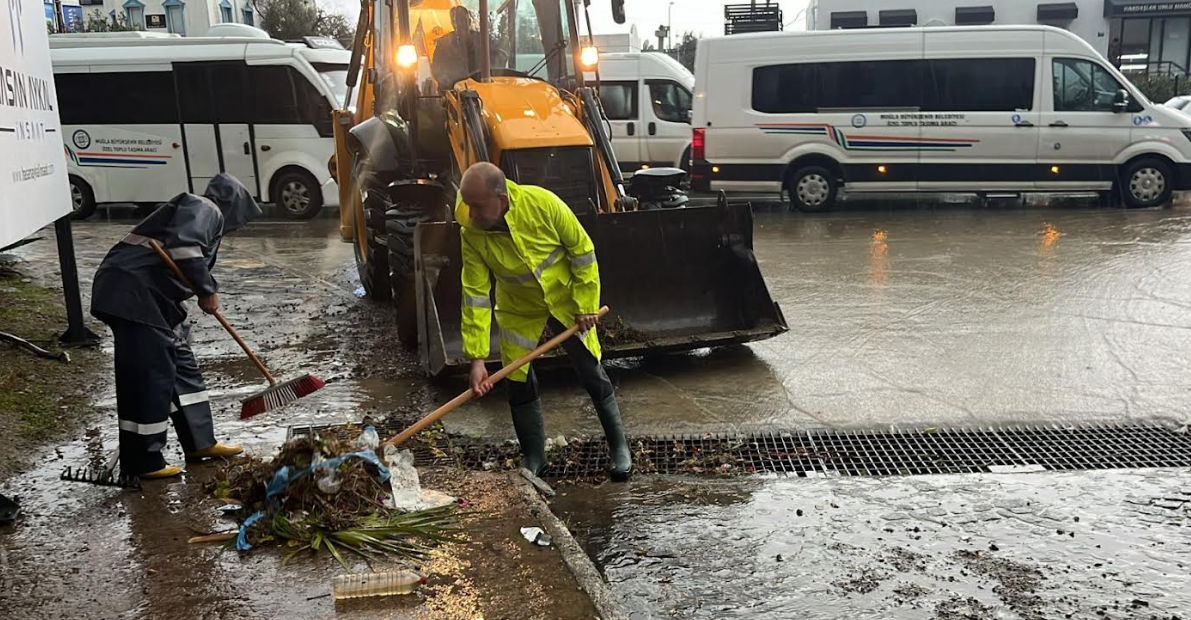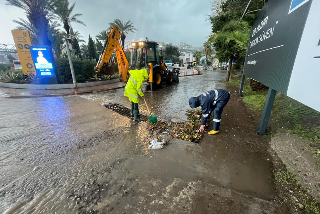 Meteoroloji'nin 'turuncu kod' uyarısının ardından teyakkuza geçen Bodrum Belediyesi, ilçe genelindeki şiddetli yağış ve fırtınanın etkilerine karşı gece boyunca çalışmalarını sürdürdü. Sahadaki çalışmaları yerinde inceleyen Bodrum Belediye Başkanı Tamer Mandalinci, şu ana kadar metrekareye yaklaşık 45 kilogram yağış düştüğünü belirterek, "Tüm ekiplerimizle 7/24 görev başındayız, sorunlu bölgelere anında müdahale ediyoruz." dedi.Yapılan uyarıların ardından planlamalarını yapan Bodrum Belediyesi; Fen İşleri, Temizlik İşleri, Destek Hizmetleri, Park ve Bahçeler, Zabıta, Afet İşleri Müdürlükleri ve Muğla Büyükşehir Belediyesi ile MUSKİ’ye bağlı ekiplerle birlikte gece saat 04.00’ten itibaren ilçe genelinde teyakkuz haline geçti. Dere yatakları, menfezler ve ana arterlerde olası taşkınlara karşı önlemler artırıldı.Başkan Mandalinci: “Mevcut menfezler yoğun yağışı karşılamada yetersiz.”