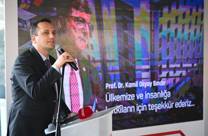 Törende duygusal anlar yaşanırken, Bornova Belediye Başkanı Ömer Eşki'nin yaptığı konuşmada, sunumn, Sındır'ın 16 yıl önce Bornova Belediye Başkan Adayı olarak açıklanmasının derecelendirmeye denk gelmesinin bir tercih olduğunu belirtti. Başkan Eşki, "O'nun Bornova'nın onun yerinde izi var. Biz durmadığını, devam ettiğini göstermek ve verilen onun emeğinin karşılığında karşılıksız kalmadığını hissettirmek istedik. Hayatımın birçok yerde kendisi ve ailesi hep merkezde oldu. İşe başladığından nişan oyunlarımızın devamına kadar… O Bornova'nın tam ortasında, kale gibi bir binaya onun kısmını vererek Bornova'ya hizmet eden herkesin burada değerlerin yaygınlaştırılmasını sağlamak istedik" dedi.Prof. Dr. Kamil Okyay Sındır'ın Duygusal Sözleri