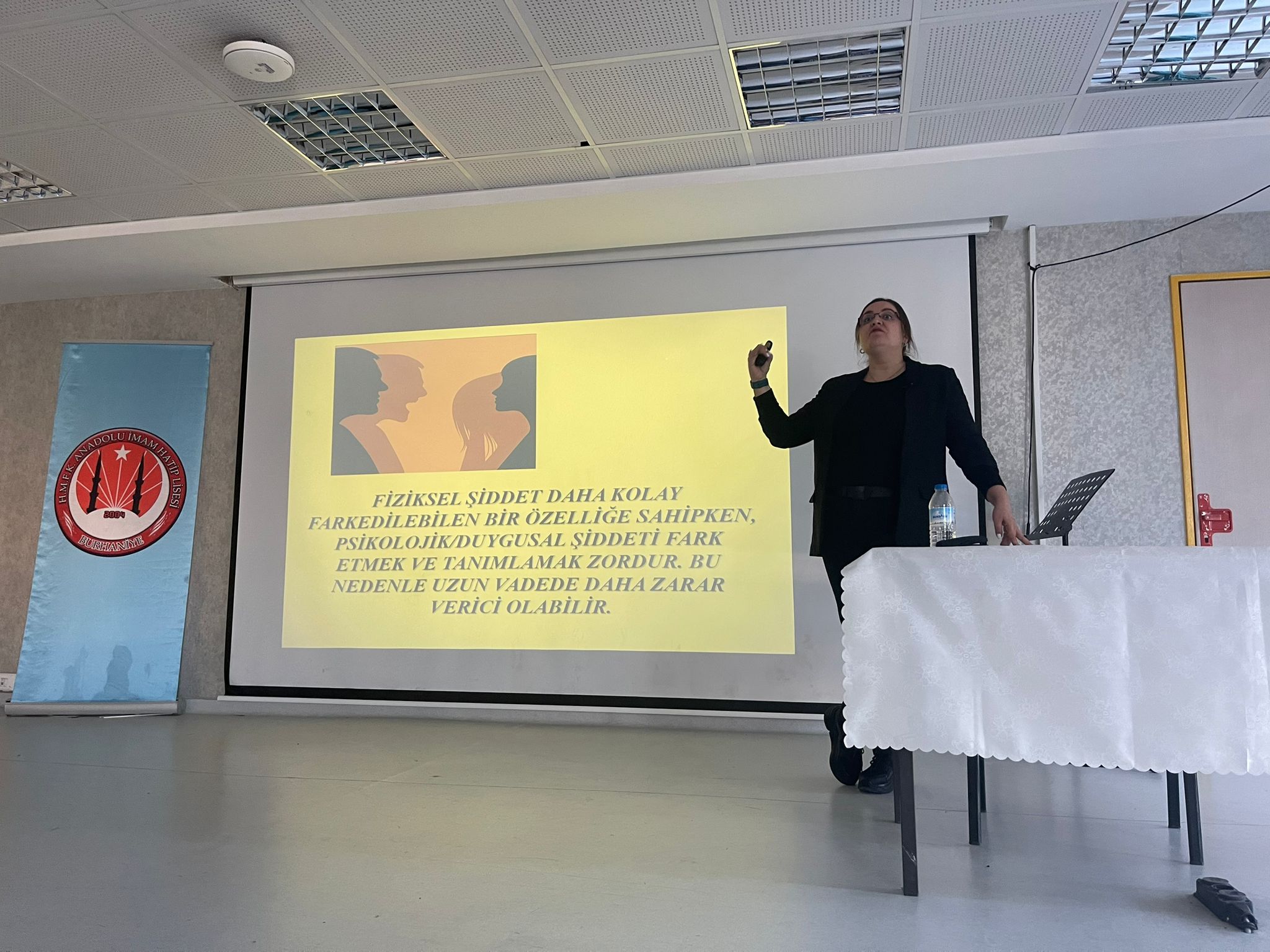 Burhaniye Belediyesi Kadın Danışma Merkezi; hem sahada hem de 2 yıldır hizmet veren binasında; Kadınların hayatlarında yaşadıkları fiziksel, psikolojik ve ekonomik şiddetin çözümleri ve sosyal anlamda özellikle şiddete maruz kalarak sıkıntı yaşayan kadınların desteklenmesi adına çalışmalarını sürdürüyor.Burhaniye Belediyesi tarafından 2 yıl önce faaliyete geçen ve vizyon projelerden biri olan “Burhaniye Belediyesi Kadın Danışma Merkezi” sosyolog ve psikolog ile 250 kişiye ayrı ayrı psikolojik ve sosyal destek verdi.Bunun yanı sıra seminerlere de katılan Merkez’in uzmanları, 2000’e yakın öğrenci ve öğretmen ile bilgilendirme toplantı düzenledi.Son olarak, Burhaniye Hacı Mehmet Fevzi Köylü Anadolu İmam Hatip Lisesi’nde 10.11. ve 12 sınıflara, “Türkiye’de Kadına Yönelik Şiddet ve Gençler Arasında Flört Şiddeti” konusunda eğitim veren Sosyolog Deniz Akcan Orcan, Belediyenin ücretsiz olarak hizmet verdiği Kadın Danışma Merkezini de tanıttı. Başkan Deveciler hayata geçirdiği projelerden biri olan Kadın Danışma Merkezi ve faaliyetlerinden gurur duyduklarını belirterek “Kadının yok sayıldığı toplumun medeniyet ölçüsü içinde değerlendirmek mümkün değildir.Kadın toplumun içindeyse o toplum medenidir ve ileridir, üretkendir. Biz de bu düşüncenin toplumuzda pekişmesi için elimizden geleni yapıyoruz yapmaya da devam edeceğiz ” dedi.