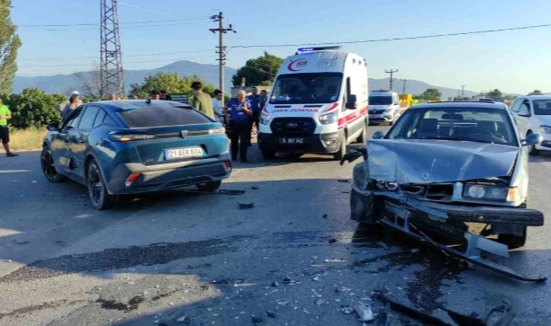 Bursa'da üç aracın karıştığı kazada 2 kişi hafif yaralandı.Kaza, saat 18.30 sıralarında Orhangazi-İznik Karayolu mezbaha kavşağında meydana geldi.Orhangazi istikametinden İznik istikametine seyreden Uğur Arslan (48) idaresindeki 16 LCR 92 plakalı otomobil, mezbaha kavşağından dönüş yapan Deniz Akdemir (35) idaresindeki 21 AEK 604 plakalı otomobile çarptı.Savrulan otomobil kavşakta bekleyen Halil Umut (66) idaresindeki 16 AKV 225 plakalı minibüse çarptı. Kazada ana yolda seyir halinde olan Uğur Arslan idaresindeki otomobilde bulunan eşi Sultan Arslan (40) ile kızı Medine Gül Arslan (15) yaralandı.İhbar üzerine olay yerine ambulans sevk edildi. İlk müdahaleleri yapılan yaralılar, ambulansla Orhangazi Devlet Hastanesine kaldırıldı. Yaralıların hayati tehlikeleri bulunmazken, polis ekipleri kaza ile ilgili inceleme başlattı.