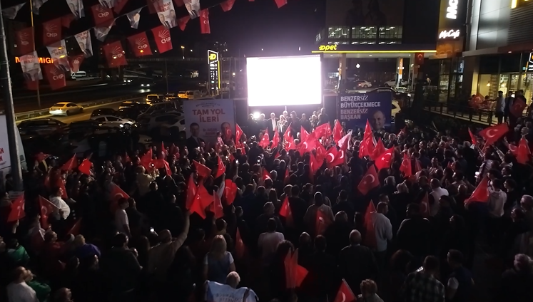 Önceki akşam sandıkların açılmasıyla birlikte CHP Büyükçekmece Seçim Koordinasyon Merkezi önünde toplanmaya başlayan Büyükçekmeceliler gecenin ilerleyen saatlerine kadar Belediye Başkanı Dr. Hasan Akgün’ü beklediler.