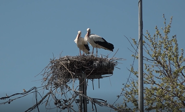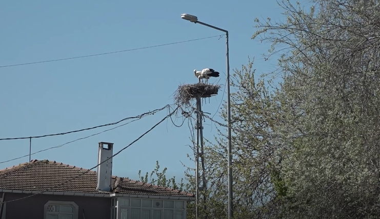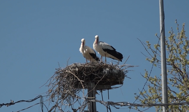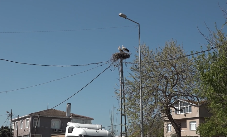 Yaklaşık 20 yıldır Büyükçekmece ilçesinin Karaağaç Mahallesi’nde elektrik direğinin üstüne yuva yapan leylekler, yol genişletme çalışmasının ardından korunan yuvalarına bu yıl yeniden geldi.