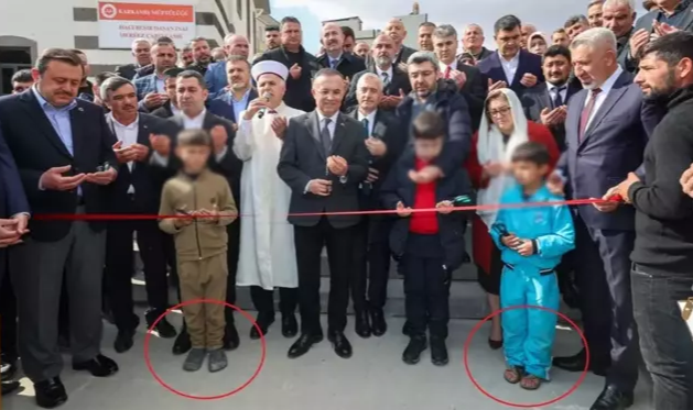 Cami açılışında vicdanları sızlatan görüntü
