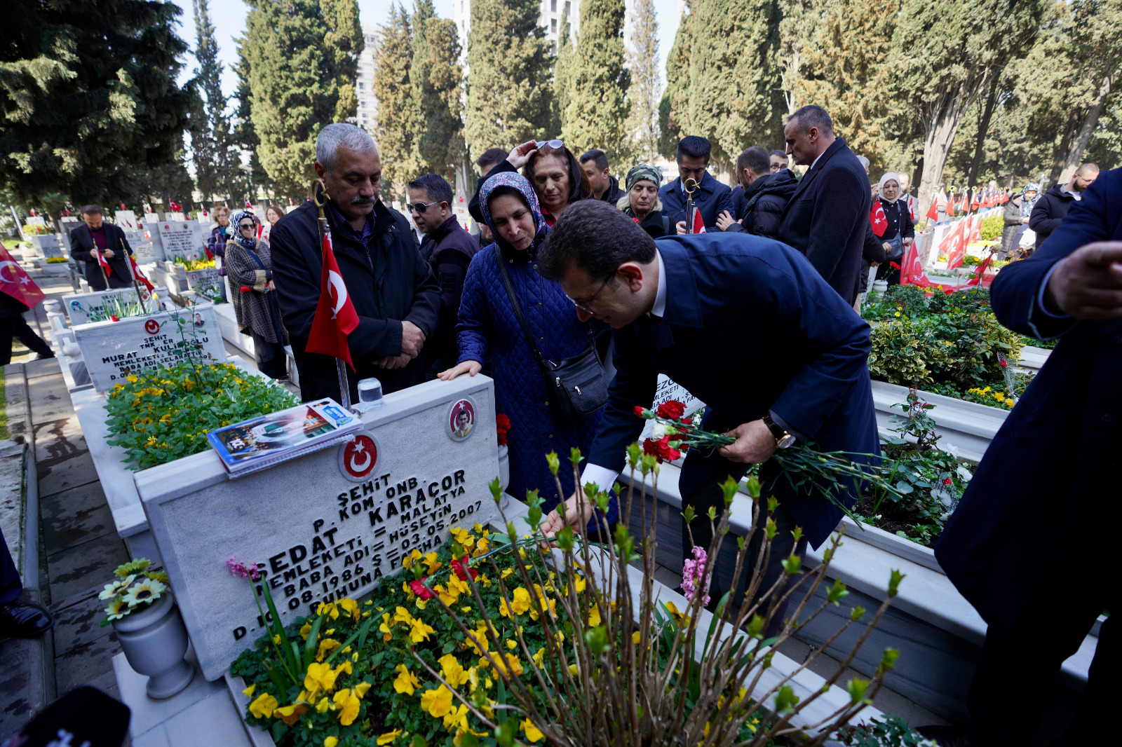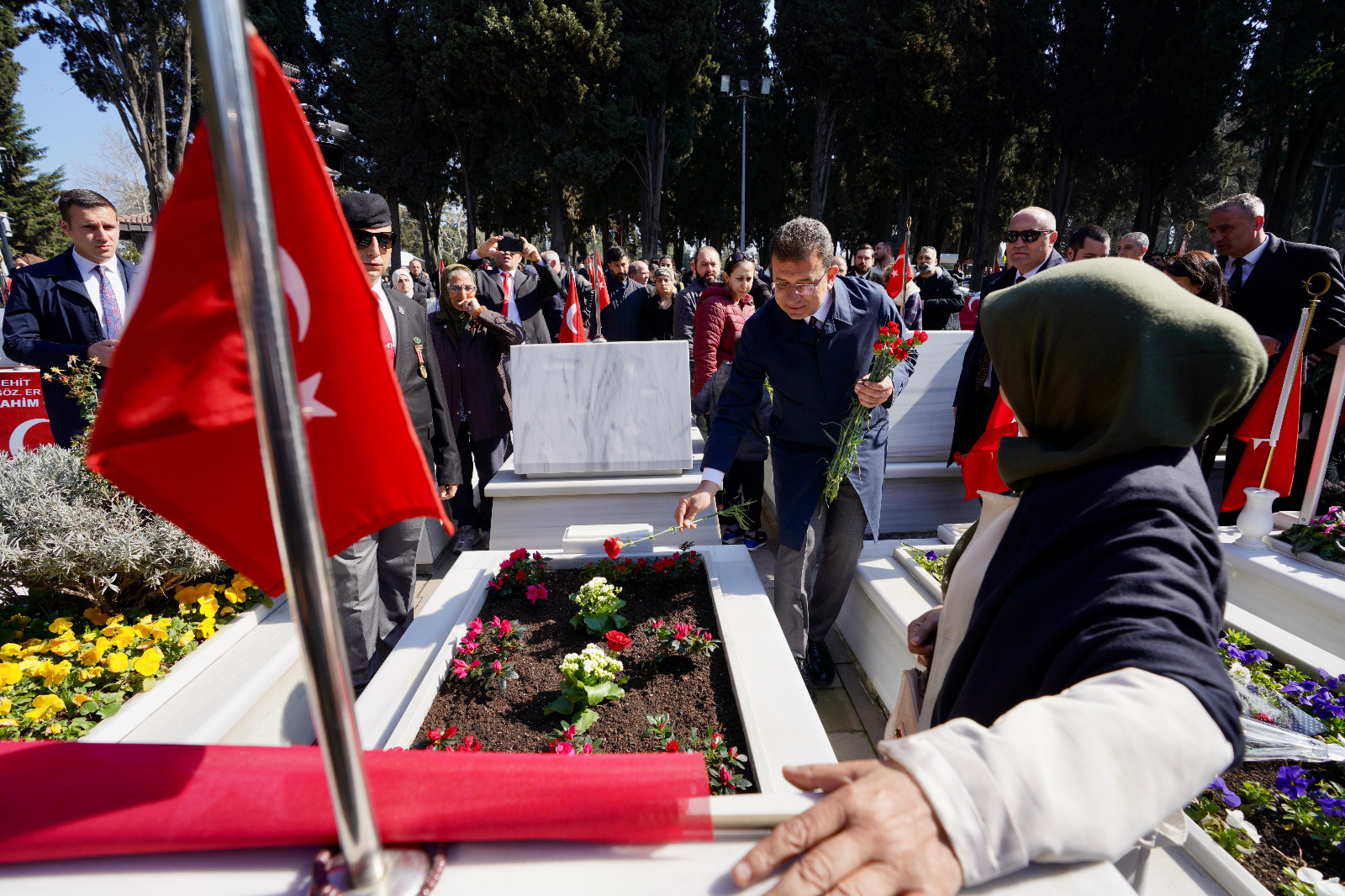 18 Mart Çanakkale Zaferi’nin 109’uncu yıldönümü nedeniyle Edirnekapı Şehitliği’nde anma töreni düzenlendi. İstanbul Valisi Davut Gül, 1. Ordu ve İstanbul Garnizon Komutanı Orgeneral Ali Sivri ve İBB Başkanı Ekrem İmamoğlu, şehitlerin aziz hatırası için dua edip, Çanakkale Anıtı’na çelenk bıraktı.EDİRNEKAPI / İSTANBUL 18 Mart Çanakkale Zaferi’nin 109’uncu yıldönümü nedeniyle Edirnekapı Şehitliği’nde anma töreni düzenlendi.İstanbul Valisi Davut Gül, 1. Ordu ve İstanbul Garnizon Komutanı Orgeneral Ali Sivri, İstanbul Büyükşehir Belediye (İBB) Başkanı Ekrem İmamoğlu ve CHP İstanbul İl Başkanı Özgür Çelik ile Türkiye Harp Malulü Gaziler Şehit Dul ve Yetimleri Derneği İstanbul Şubesi Başkanı Önder Çelik, Edirnekapı Şehitliği’ndeki Çanakkale Anıtı’na çelenk bıraktı.Şehit yakınları ve gazilerin de katıldığı tören, saygı duruşunda bulunulması, saygı atışı yapılması ve İstiklal Marşı’nın okunmasıyla devam etti.Şehit yakınları ve gazilerin de katıldığı törende; Çelik bir konuşma yaparken, törenden erken ayrılan Vali Gül’e vekaleten de İstanbul Vali Yardımcısı Mehmet Sülün, Şehitlik Defteri’ne duygularını yazdı.Anıt önündeki anma, İstanbul İl Müftüsü Prof. Dr. Safi Arpaguş’un okuduğu dualarla sona erdi.Resmi anmaya katılan protokol, törenin ardından Edirnekapı Şehitliği’ndeki şehit kabirlerini ziyaret etti ve şehit yakınlarının acılarına ortak oldu.
