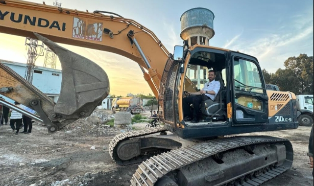 Başkan Kadir Aydar, makamına oturmadan iş makinesinin başına geçip ilk icraatı için kepçeyi vurdu