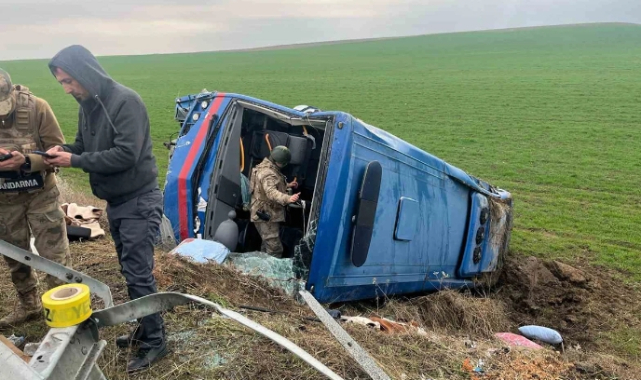 Cezaevi aracı şarampole devrildi