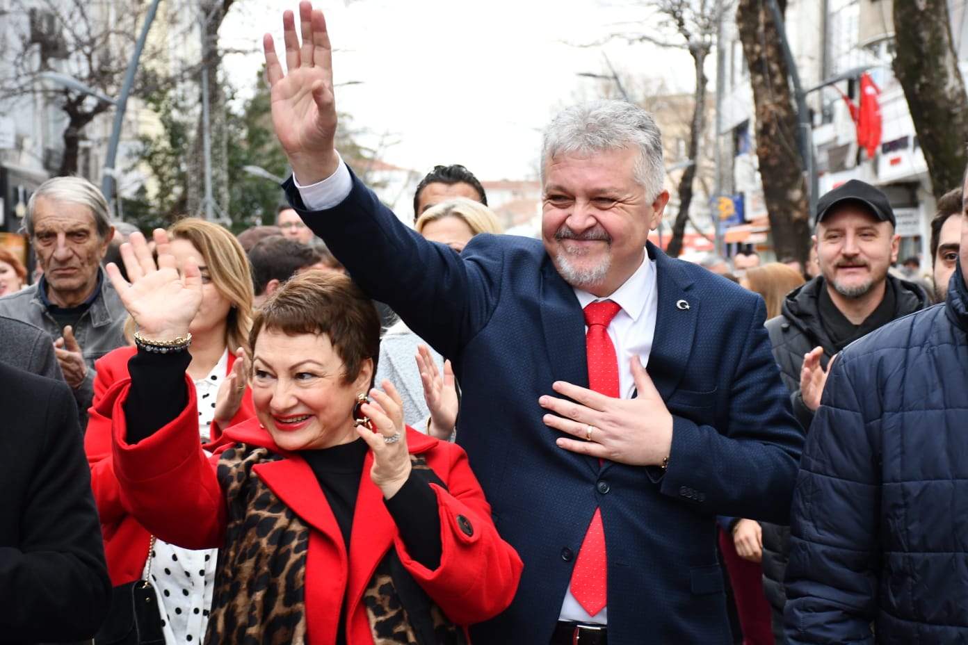 Gerenli’nin; “Lüleburgaz’ın sorunlarını teker teker tespit ettik. Çözüm odaklı, kavga etmeden çözmeye başladık. Çünkü ben Yunus Emre’nin sözlerini aklıma mıh gibi kazıdım; ‘Ben gelmedim kavga için, benim işim sevgi için. Dostun evi gönüllerdir, gönüller yapmaya geldim” ifadeleri kalabalıktan yoğun alkış aldı.