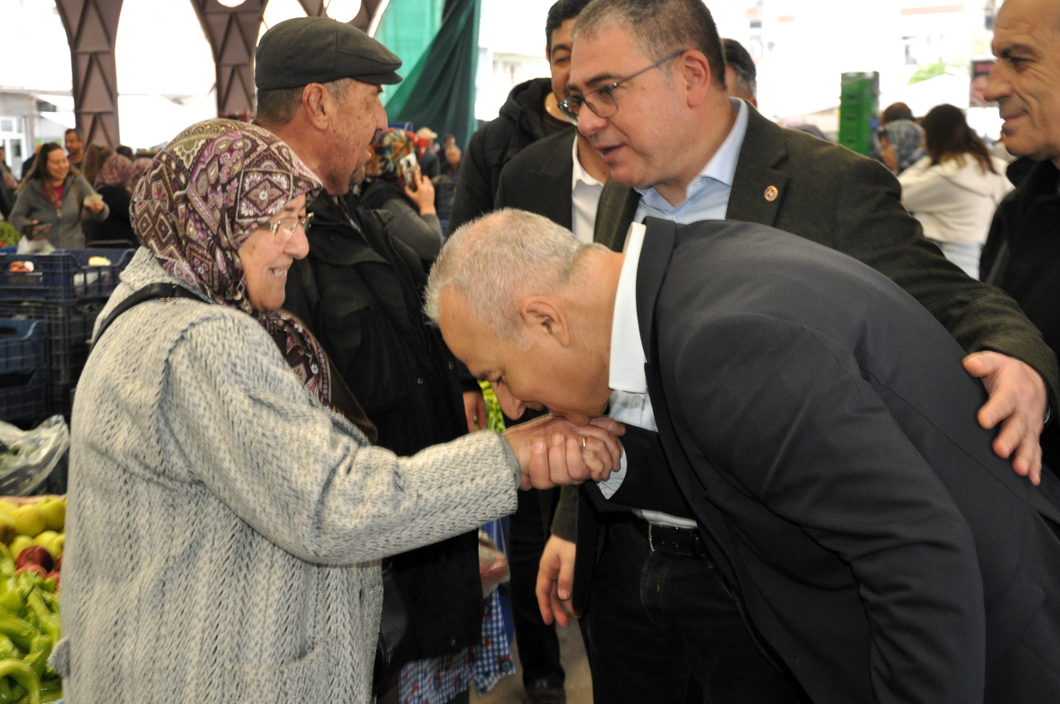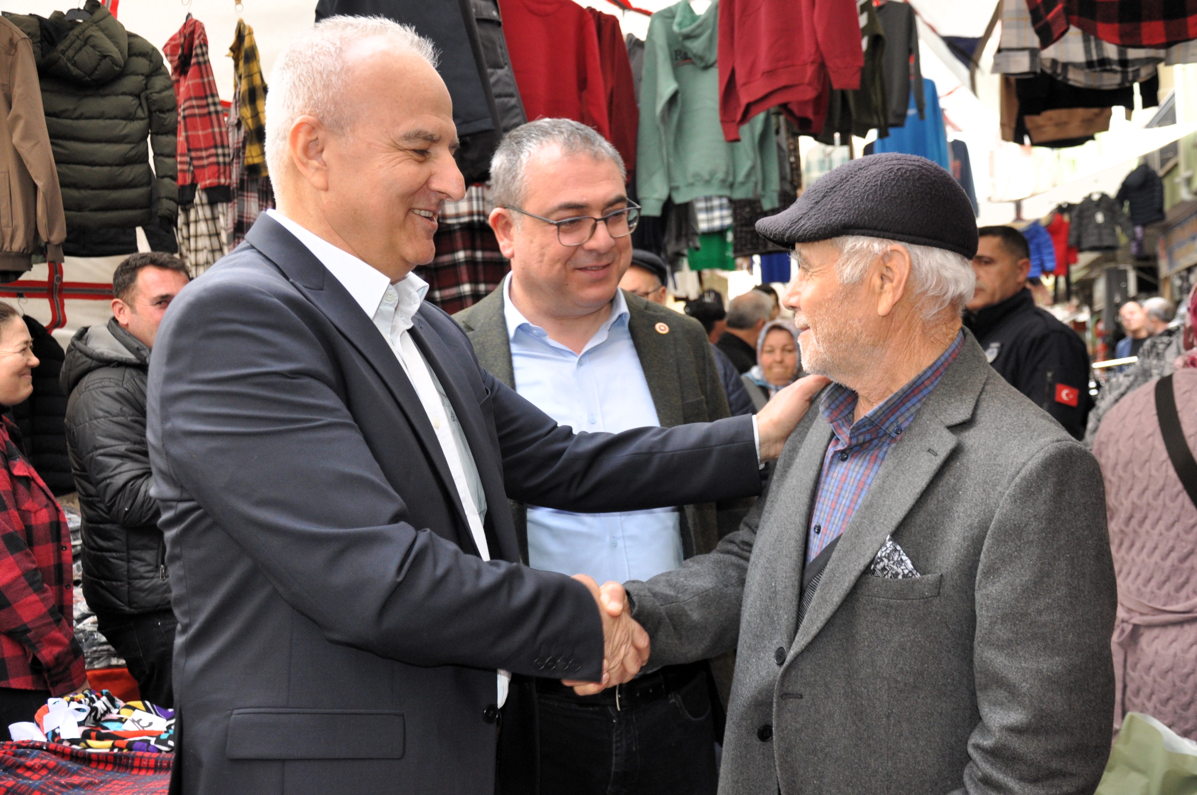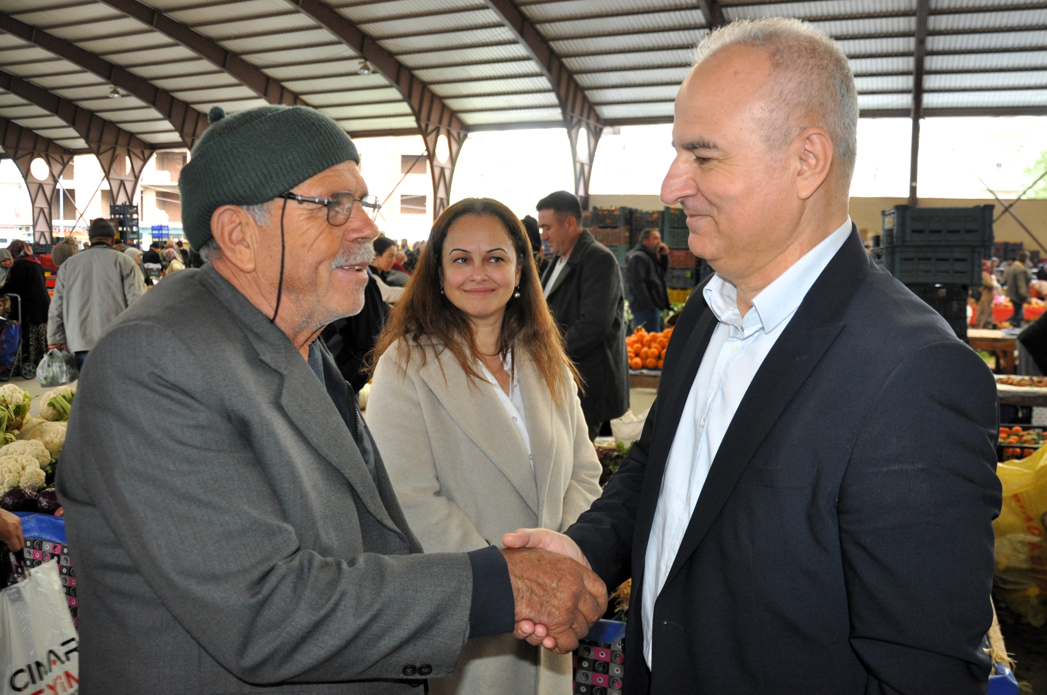 Çine Belediye Başkanı Mehmet Kıvrak, CHP Aydın Milletvekili Evrim Karakoz’la birlikte Perşembe pazarını ziyaret ederek vatandaşlar ve esnafla bir araya geldi.Milletvekili Karakoz ve Başkan Kıvrak, esnaf ve vatandaşların talep, önerilerini dinleyerek hayırlı işler diledi. Çine Belediye Başkanı Mehmet Kıvrak, ilçe ziyaretleri kapsamında Çine'ye gelen Cumhuriyet Halk Partisi (CHP) Aydın Milletvekili Evrim Karakoz’u makamında ağırladı. Ziyaret sonrası CHP Aydın Milletvekili Evrim Karakoz ve Başkan Mehmet Kıvrak, perşembe pazarını ziyaret etti.Evrim Karakoz ve Mehmet Kıvrak, pazarcı esnafı ve vatandaşlarla bir araya geldi. Pazarcı esnafına hayırlı işler temennisinde bulunan Karakoz ve Kıvrak, vatandaşlarla yakından ilgilenerek talep ve önerilerini yerinde dinledi. “HALKIMIZLA İÇ İÇE OLACAĞIZ”Vatandaşlarla yakından ilgilenerek öneri ve görüşlerini dinleyen Çine Belediye Başkanı Mehmet Kıvrak, halkın taleplerinin en kısa sürede yerine getirileceğini belirtti.Doğalgaz çalışmaları sonucu bozulan ve tahrip olan yollarda taş döşeme ve tamirat işlerinin aralıksız sürdüğünü ifade eden Başkan Mehmet Kıvrak, “İlçemizin meselelerine birlikte çözüm getireceğiz.Vatandaşlarımızın talep ve önerilerini dinledik, yerine getirilmesi noktasında ilgili birimlerimize talimatlarımızı verdik. Ekiplerimiz daha modern bir Çine için alanda” diye konuştu.Halkla iç içe bir belediyecilik anlayışıyla vatandaşlarla bir araya geldiklerini belirten Başkan Kıvrak, “İlçemizde yapacağımız çalışmalarımızda, gerçekleştireceğimiz projelerimizde vatandaşlarımızla fikir alışverişinde bulunacağız. Bu sayede halkımızın da belediyemizin hizmetlerinde söz sahibi olmalarını istiyoruz” dedi. MİLLETVEKİLİ EVRİM KARAKOZ, BAŞKAN KIVRAK İÇİN DESTEK İSTEDİÇine halkıyla yakından ilgilenen CHP Aydın Milletvekili Evrim Karakoz da 31 Mart’ta gerçekleştirilecek yerel seçimlerde CHP Çine Belediye Başkan Adayı’nın Mehmet Kıvrak olduğunu hatırlatarak, Başkan Kıvrak ve partisine destek istedi.Milletvekili Karakoz, “31 Mart yerel seçimlerinde partimizin adayı Başkanımız Mehmet Kıvrak. Değerli desteklerinizi bekliyoruz” diye konuştu. Milletvekili Evrim Karakoz ve Başkan Kıvrak’ı aralarında görmekten büyük mutluluk duyduklarını belirten pazar esnafı ve vatandaşlar, ziyaretinden dolayı kendilerine teşekkür etti.Ziyarette Karakoz ve Kıvrak’a CHP Çine İlçe Başkanı Tayfun Şahin, CHP Çine İlçe Kadın Kolları Başkanı Arzu Yavuz Kocabay, CHP Çine Gençlik Kolları Başkanı Mehmet Çavdar, Çine Belediye Meclis Üyesi Timuçin Karabulut ve CHP Çine Yönetim Kurulu Üyeleri eşlik etti.