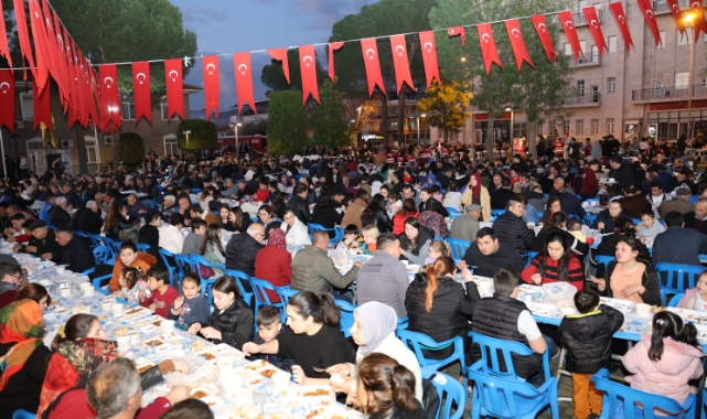 Çine Belediye Başkanı Mehmet Kıvrak'ın düzenlediği iftar yemeğiyle Çineli vatandaşlar bir araya geldi.Belediye Meydanı'nda kurulan iftar sofrasında Çineli vatandaşlar, orucunu birlikte açtı.İftar öncesi alana gelen Belediye Başkanı Mehmet Kıvrak, masaları tek tek dolaşarak iftara katılanlarla sohbet etti.Meydanı dolduran kalabalığın Ramazan ayını tebrik eden Başkan Mehmet Kıvrak, "Ramazan ayı, birlik ve beraberliğimizin güçlenmesine, paylaşmanın ve yardımlaşmanın değerini yeniden hatırlamamıza da vesile oluyor.Bu güzel akşamda birlikte iftar yaparak geleneklerimizi yaşatmanın, paylaşmanın ve yardımlaşmanın mutluluğunu yaşıyoruz" diye konuştu."ALLAH'IN İZNİYLE ÇİNE'MİZİ ŞAHA KALDIRACAĞIZ"Çine Belediyesi'nin 17 ilçe arasında en çok çalışan, en çok üreten, parklar, düğün salonları, pazar yerleri, otel, fabrika yapan, istihdama katkı sağlayan belediyelerden biri olduğunun altını çizen Belediye Başkanı Mehmet Kıvrak, "Gelecek dönemde de her kesime hitap eden projelerimizle Çine’mizi hak ettiği layık olduğu günlere kavuşturacağız.Yollarımızı asfaltlayacağız. Kreş, pazar yeri, otopark, fabrika açacağız. Gençlerimize sosyalleşebilecekleri mekanlar sunarken, iş imkanları sağlayan yerler de açacağız.Hayvancılık yapan, tarımla uğraşan üreten emekçi kardeşlerimize destek olacağız.Esnafımızın ekonomik olarak kalkınmasını sağlayacağız. Çine’mizi Allah’ın izniyle şaha kaldıracağız" ifadelerini kullandı.