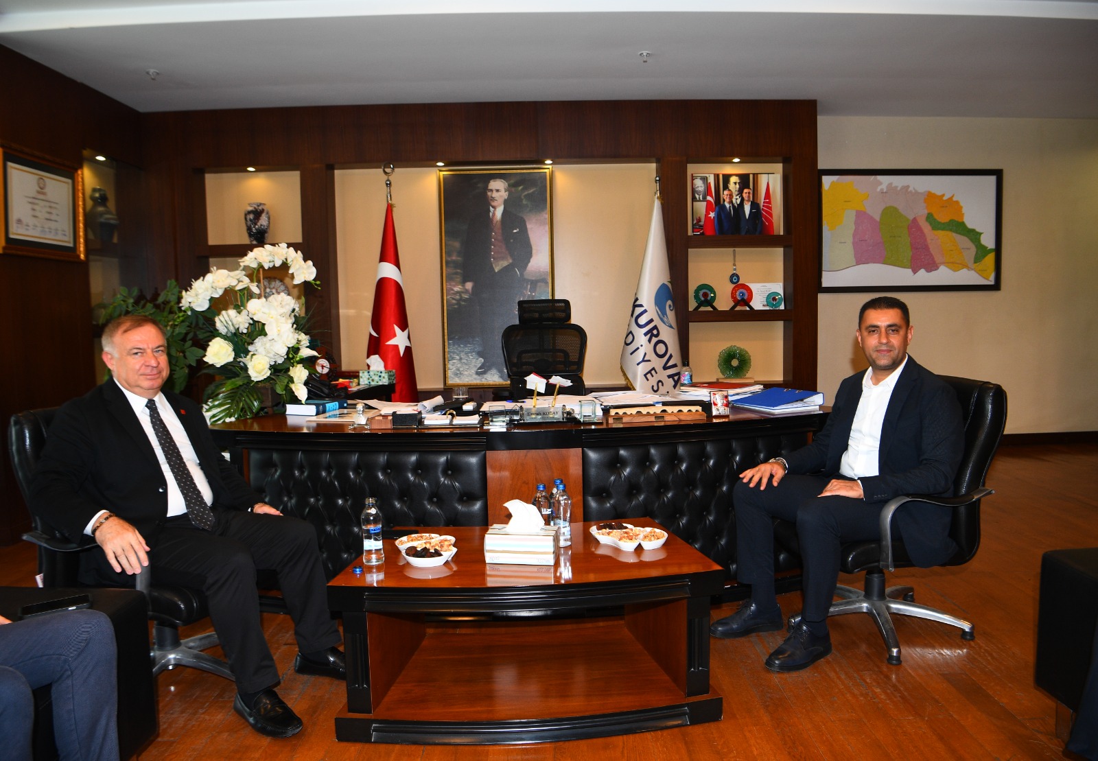 “Orman Yangınları ve Çevre Felaketleri" temalı 14 Büyükşehir Belediyesi İtfaiye ve Afet İşleri Daire Başkanlıkları Koordinasyon Toplantısı'na katılmak için Adana’ya gelen CHP Yerel Yönetimler ve Dirençli Kentlerden Sorumlu Genel Başkan Yardımcısı Gökan Zeybek, Çukurova Belediye Başkanı Emrah Kozay’ı makamında ziyaret etti.ÇUKUROVA’DA ÇOK GÜZEL İŞLERE İMZA ATACAĞIZ