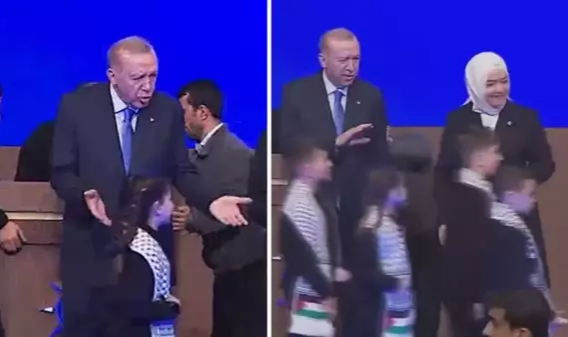"Engelsiz Türkiye" programında açıklamalarda bulunan Cumhurbaşkanı Erdoğan, çocuklar sahneye çıktığı sırada sahnenin altında bulunan birini azarladı.