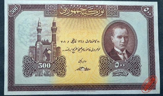 Türkiye Cumhuriyeti’nin ilk döneminde basılan nadir banknotlardan biri olan 500 liralık banknot, tarihi ve kültürel simgeleriyle dikkat çekiyor.