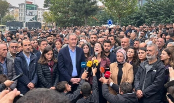 DEM Parti Eş Genel Başkanları Tülay Hatimoğulları ve Tuncer Bakırhan, Batman'da kayyum kararlarına tepki gösterdi. Tülay Hatimoğulları, “Bizleri siyaseten yenemedikleri için yargı eliyle, İçişleri Bakanı’nın hukuksuzluğuyla darbe gerçekleşmiştir. Biz diyoruz ya bu bir siyasi darbedir, hayır aynı zamanda yargı darbesidir, aynı zamanda polis darbesidir” dedi. Tuncer Bakırhan da demokratik kitle örgütleri ve diğer siyasi partileri Batman, Mardin ve Halfeti’ye sahip çıkma ve dayanışma çağrısında bulundu.DEM Parti Eş Genel Başkanları Tülay Hatimoğulları ve Tuncer Bakırhan, Mardin Büyükşehir, Batman ve Şanlıurfa Halfeti belediyelerine kayyum atanması üzerine Batman’a geldi. Belediye önünde açıklama yapan Tülay Hatimoğlulları, şunları söyledi:“SİYASİ VE YARGI DARBESİ"-Şu an Batman’dayız ve gasp edilen, çalınan belediyenin önündeyiz. Belediye, kayyumun gelip işgal ettiği bir bina değildir bizim için. Belediye, halktır. -Belediye, Batman halkının ta kendisidir. O dört duvarları gasp ederek, halkın iradesini çalan, çaldığını zannedenler bilsin ki defalarca kayyum atanmasına rağmen halk yine partisini seçti, yine kendi belediye eş başkanlarını seçti. "SİYASETEN ELİMİZİ BÜKEMEDİKLERİ İÇİN..."-Siyaseten elimizi bükemedikleri için, bizleri siyaseten yenemedikleri için yargıyı ve bir ordu polisi buraya yığarak yargı eliyle, İçişleri Bakanı’nın hukuksuzluğuyla darbe gerçekleşmiştir.-Biz diyoruz ya bu bir siyasi darbedir, hayır aynı zamanda yargı darbesidir, aynı zamanda polis darbesidir. -12 Eylül’de askerin postallarıyla darbe gerçekleştirdiler, şimdi de polislerin copuyla, gazıyla, TOMA’sıyla halkın iradesini çalıyorlar. Bu düpedüz bir darbedir.“4 KASIM'IN YIL DÖNÜMÜNDE GERÇEKLEŞTİRİLMESİ SİYASİ BİR MESAJ"-Bugün 4 Kasım... 4 Kasım HDP’ye, demokratik siyasete vurulmuş darbelerden biriydi hatırlayın. 4 Kasım’da seçilmişlerimiz eş başkanlarımız sevgili Figen Yüksekdağ ve Selahattin Demirtaş ve diğer arkadaşlarımızın gözaltına alındığı, seçilmişlerimizin dokunulmazlıkları kaldırıldıktan sonra gözaltıların gerçekleştiği 4 Kasım darbesidir. -Bu darbenin yıl dönümünde, yeniden bir darbeyi gerçekleştirmeleri şüphesiz ki bir siyasi mesajdır demokratik siyasete. Biz bu mesajı aldık. Geldiler el sıktılar ki dediler iç barış sağlayacağız, bunların iç barış gibi bir dertleri yok.“ONURLU BİR BARIŞA HAZIR OLDUĞUMUZU SÖYLEDİK"-Biz DEM Parti olarak onurlu bir barışa hazır olduğumuzu söyledik. Ama onlar Esenyurt’a kayyum atadılar şimdi de üç belediyemize Mardin’e, Batman’a ve Halfeti’ye kayyum atadılar. Bu kayyum darbesine karşı sanmasınlar ki halkımız boyun eğecek, sanmasınlar ki DEM Parti boyun eğecek. -Bizler demokratik zeminde halkımızla beraber belediyelerimize de irademize de mücadelemize de onurlu barışa da hep birlikte sahip çıkacağız. Bizleri bu darbelerle boyun eğdireceklerini zannedenler, geçmiş dönemdeki kayyum deneyimlerinden bilmelidir ki bizler kayyum atanmış belediyeleri değil sadece oy hırsızlığı yaptığı belediyelere de kaçak seçmen getirdikleri belediyeleri de büyük bir onurla halkımızı sahiplenmesiyle halkımızın iradesiyle kazandık. -Yüz bin tane kayyum atasanız da yüz bin tane darbeci valiyi bu binalarda oturtsanız bin tane darbeci kaymakamınızı da bu binalarda oturtsanız halkın iradesi tecelli edecektir. Halkın iradesiyle bizler seçme ve seçilme hakkımıza bir yurttaş olarak sahip olduğumuz seçme ve seçilme hakkımıza sahip çıkacağız. Bu darbe, Kürt halkının iradesini çalmak isteyen bir darbedir. -Kürt halkı, Türkiye’deki diğer halklarla, demokrasi güçleriyle tek vücut olarak bu darbeye karşı özgürlük ve demokrasi mücadelesini yükselteceğimizin sözünü bir kez daha veriyoruz. Kayyumcu iradeye asla rahat vermeyeceğiz. Halkın iradesi bu sokaklarda olacak.