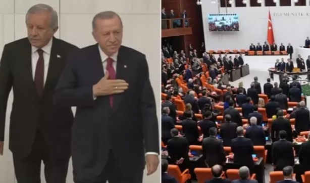 Yeni yasama dönemi başlarken TBMM'de de dikkat çeken anlar yaşandı. Cumhurbaşkanı Erdoğan'ın TBMM Genel Kurulu'na girişi sırasında hangi partilerin nasıl tavır takınacağı merak konusu olmuştu.CHP'DEN 5 YIL SONRA BİR İLKCHP ve İYİ Parti grubu Meclis'in açılışında Cumhurbaşkanı Erdoğan'ı ayakta karşıladı. CHP grubu 5 yıldır Meclis açılışlarında Cumhurbaşkanı Erdoğan'ı protesto etmek için ayağa kalkmıyordu.Cumhurbaşkanı Erdoğan, TBMM'ye geldiğinde yalnızca DEM Parti grubunun ayağa kalkmadığı görüldü. DEM Partili vekiller Erdoğan'ın salona girişi sırasında sıralarında oturup kendisini takip etti.