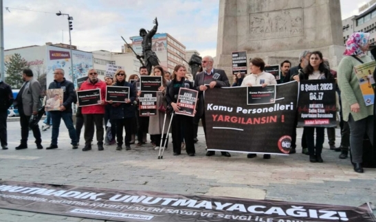 Depremde yakınlarını kaybeden aileler Ankara Ulus’ta eylem yaptı. Depremde kız kardeşi ve iki yeğenini kaybeden bir vatandaş, “Kız kardeşim ve iki küçük yeğenim örgütlü bir kötülüğün kurbanı mı oldular? Bu devlet eliyle işlenen bir cinayet mi? Biz bunu nasıl anlayacağız? Zihnimize nasıl açıklayacağız? Kamu personeli bütün suçlular yargılanmalıdır” dedi.