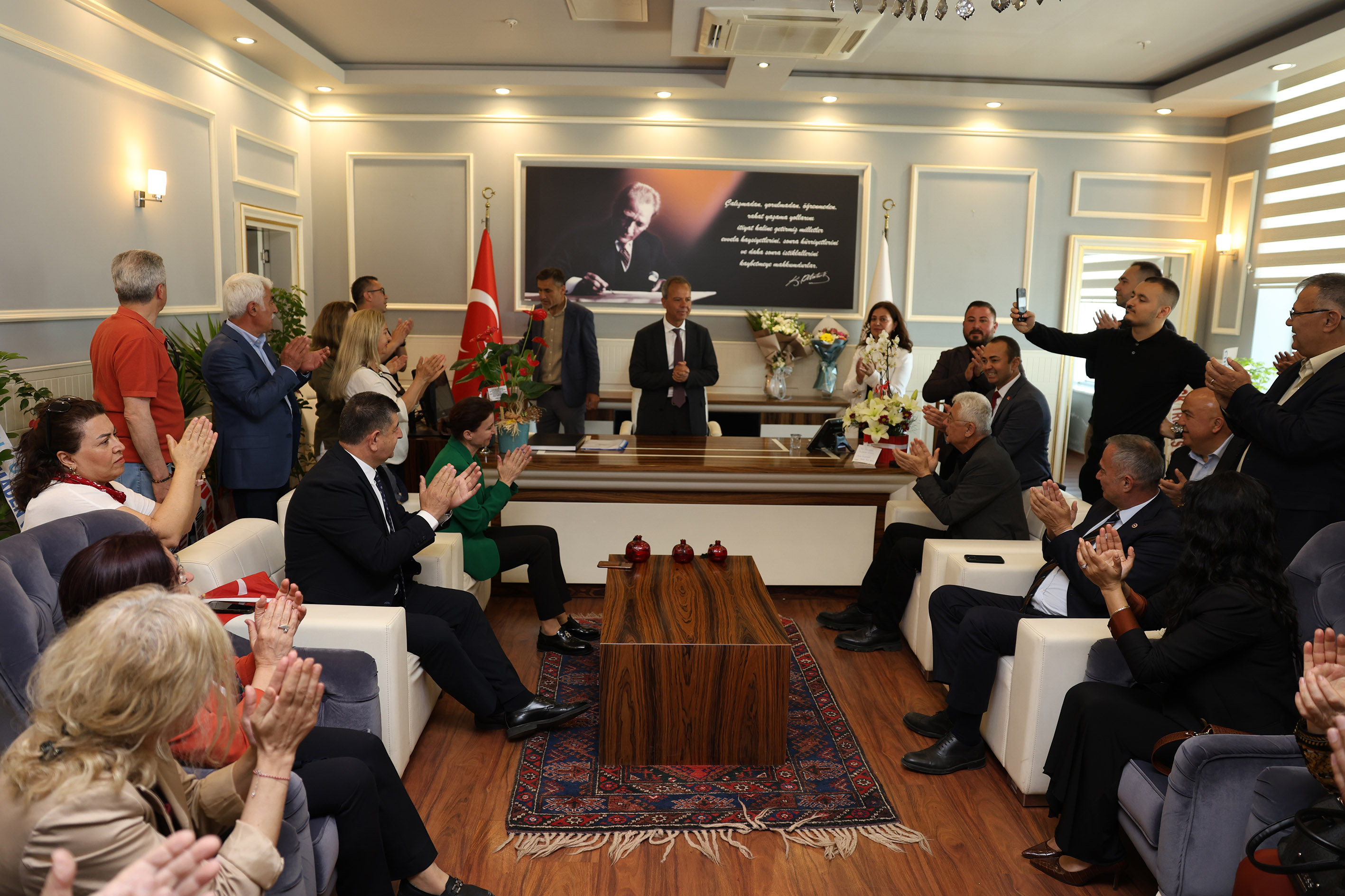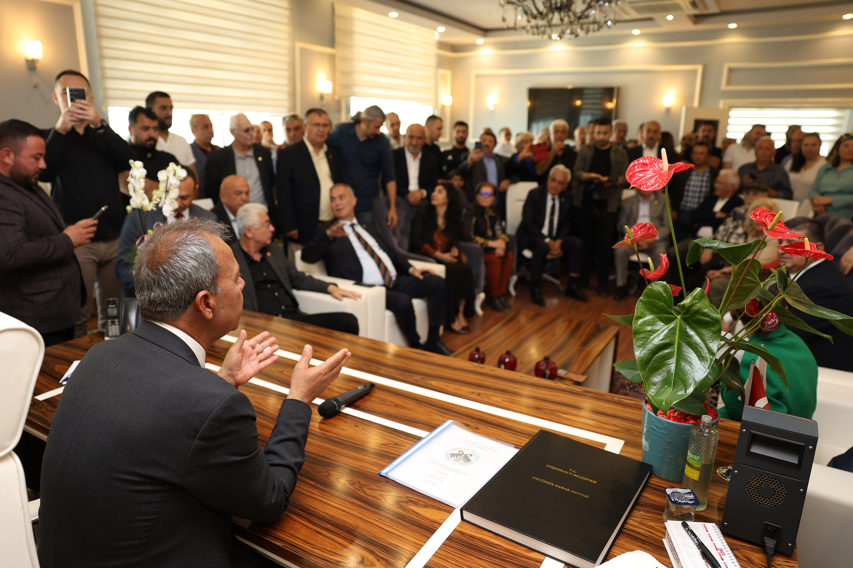 Döşemealtı Belediye Başkanı Menderes Dal, bugün düzenlenen halkla buluşma etkinliğinde Döşemealtı halkına teşekkür ederek, “Mazbatamızı aldık, kolları sıvadık, şimdi ise çalışma zamanı” dedi.Antalya’da Döşemealtı Belediye Başkanlığı’nı kazanan Menderes Dal dün gerçekleştirilen mazbata ve devir-teslim törenin ardından bugün halkla buluşma etkinliğinde vatandaşlarla buluştu.Döşemealtı Belediyesi önündeki Kent Meydanı’nda gerçekleştirilen halk buluşmasına yoğun ilgi oldu. CHP Antalya İl Başkanı Nail Kamacı, Antalya milletvekilleri Aliye Coşar, Cavit Arı ve Sururi Çorabatır, İl Kadın Kolları Başkanı Nilüfer Deveci, Konyaaltı İlçe Başkanı Demet Gündüz, Döşemealtı İlçe Başkanı Veli Çot, il ve ilçe yöneticileri, eski belediye başkanları ve milletvekilleri ile çok sayıda vatandaş katıldı.EMEĞİ GEÇEN HERKESE TEŞEKKÜR ETTİHalkla buluşma etkinliği saygı duruşunda bulunulması ve İstiklal Marşı’nın okunmasıyla başladı. Coşkulu kalabalığa seslenen Döşemealtı Belediye Başkanı Menderes Dal, seçim çalışmaları sırasında emek veren herkese teşekkür etti. Seçimde yarıştığı başkan adaylarına da teşekkür eden Başkan Dal, “İlk günden itibaren bizi bağrına basan ve sevgisini hiçbir zaman eksik etmeyen Döşemealtı halkına yürekten teşekkür ediyorum.Gece gündüz demeden, mahalle mahalle, kapı kapı ziyaretler gerçekleştiren cefakar kadınlarımıza teşekkür ediyorum, ellerinden öpüyorum. Kırmızı ceketlilerimize teşekkür ediyorum. Sevgili eşime Şefika Dal’a, oğluma ve kızıma çok teşekkür ediyorum. Gençlerimize teşekkür ediyorum.Avukatlarımıza çok teşekkür ediyorum. Bize inanan Cumhuriyet Halk Partisi Genel Başkanı Özgür Özel’e, her zaman destek veren İl Başkanım Nail Kamacı’ya, İlçe Başkanım Veli Çot’a, Antalya Büyükşehir Belediye Başkanım Muhittin Böcek’e, milletvekillerimize ve tüm parti örgütüme teşekkür ediyorum.Adını sayamayacak kadar fazla olan gönüllülerimize ve çalışma arkadaşlarıma teşekkür ediyorum. Görünmeyen rakiplerimiz de vardı ama görünen rakiplerime de teşekkür ediyorum” dedi.‘GÜVENİNİZİ BOŞA ÇIKARMAYACAĞIZ’Döşemealtı halkına gösterdikleri ilgi ve sevgilerine layık olacaklarını vurgulayan Başkan Menderes Dal, “Bizlere inandınız, dürüstlüğümüze güvendiniz, sağolun varolun. Sizi mahcup etmeyeceğiz, güveninizi boşa çıkarmayacağız. Kolları sıvadık, şimdi çalışma zamanı. Bizlere vermiş olduğunuz sorumluluğun farkındayız.Yolumuz uzun. İşimiz elbette kolay değil. Ancak halkımızın desteğiyle her türlü zorluğun üstesinden geleceğiz. Sevginize ve ilginize layık olacağız. 32 mahallemize eşit ve nitelikli hizmet için çok çalışacağız. Tespitlerimizi yaptıktan sonra ihtiyaç duyulan her alanda çalışmalarımızı hayata geçireceğiz.Temel belediyecilik hizmetlerinden sosyal hizmetlere, kültür-sanat ve spor projelerine kadar her alanda yapacağımız çok iş var. Kuracağımız liyakatli kadrolarla projelerimizi tek tek hayata geçireceğiz.Daha mutlu ve daha huzurlu bir Döşemealtı yaratacağız. Döşemealtılı hemşehrilerime, meclis üyelerime ve bu törene katıldığınız için hepinize ayrı ayrı yürekten teşekkür ediyorum. Ramazan Bayramınızı şimdiden kutluyorum, saygılarımı sunuyorum” diye konuştu.KAMACI: BİRLİKTE ÇOK GÜZEL İŞLER YAPACAĞIZCHP Antalya İl Başkanı Nail Kamacı da yaptığı konuşmada seçimi kazanan Başkan Menderes Dal’ı kutlayıp başarı dileklerini iletti. Örgütün geçmişten bu yana verdiği mücadelelerin önemine işaret eden Kamacı, “Antalya Büyükşehir Belediyesi başta olmak üzere kazandığımız 16 ilçede birlikte çok güzel işler yapacağız” dedi.CHP Antalya Milletvekili Cavit Arı, Döşemealtı ve Antalya genelinde elde edilen başarıya işaret ederek, Başkan Menderes Dal’a görevinde başarı diledi. CHP Döşemealtı İlçe Başkanı Veli Çot da Başkan Menderes Dal ve ekibinin Döşemealtı’na güzel hizmetler yapacaklarını vurguladı. Halkla buluşma etkinliğinin ardından Başkan Menderes Dal, makamında tebrikleri kabul etti.