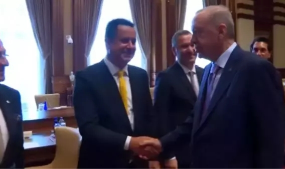 Görüşmeye damga vuran an ise tokalaşma sırasında Cumhurbaşkanı Erdoğan'ın Acun Ilıcalı'ya "Ne haber?" demesi oldu. Görüntülerde, Erdoğan'ın Acun'dan önceki herkesin elini "Hoş geldiniz" diyerek sıktığı görülüyor.ALİ KOÇ'TAN ERDOĞAN'A HEDİYE