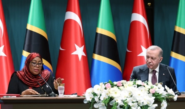 Erdoğan, İran'ın İsrail'e olan saldırısına değinerek "Batılı ülkelerin İran'ın misillemeleri karşısında tek bir ses olarak tepki verebildiklerini gördük. Aynı aktörlerin şimdi de tek ses olarak İsrail'e dur demeleri gerekiyor." diye konuştu.Cumhurbaşkanı Recep Tayyip Erdoğan, Tanzanya Cumhurbaşkanı Samia Suluhu Hassan'ı resmi törenle karşılamasının ardından basına kapalı görüşme gerçekleştirdi. Erdoğan ve Hassan, görüşmenin ardından ortak basın toplantısında açıklamalarda bulundu. "Bu ziyaret iki ülke arasında bir dönüm noktası" ifadelerini kullanan Erdoğan "Ticaret hacmimizi 1 milyar dolara çıkarmayı hedefliyoruz." dedi. Ayrıca iki ülke arasında 6 anlaşma imzalandı.İsrail'in ablukası altındaki Gazze'deki son duruma ilişkin konuşan Erdoğan, İran'ın İsrail'e olan saldırısına da değinerek "Bir an önce acil ve kalıcı ateşkes sağlanmalı, sonrasında ise iki devletli çözümü hayata geçirmeye dönük adımları hemen atmalıyız. Bu hafta batılı ülkelerin İran'ın misillemeleri karşısında tek bir ses olarak tepki verebildiklerini gördük. Aynı aktörlerin şimdi de tek ses olarak İsrail'e dur demeleri gerekiyor." dedi.Erdoğan'ın açıklamaları şu şekilde:Bu ziyaret iki ülke arasında bir dönüm noktası olacak. Ticaret hacmimizi 1 milyar dolara çıkarmayı hedefliyoruz. Önümüzdeki dönemde çabalarımızı bu yönde yoğunlaştıracağız. Yarın İstanbul'da düzenlenecek Türkiye Tanzanya iş forumu bu açıdan önemli bir adım olacaktır. Ülkeyi baştan başa saracak demiryolu projesinin büyük bir kısmının bir Türk şirket tarafından inşa ediliyor olması bizim için gururdur.TERÖRLE MÜCADELEGörüşmelerimizde terörle mücadeleyi de ele aldık. Terör örgütleri arasında ayrım yapmayan Türkiye bu konudaki deneyimlerini de paylaşmıştır. FETÖ terör örgütü ile mücadele kapsamında Tanzanya'dan beklentilerimizi paylaştık. İnşallah bu görüşme sonrasında Tanzanya tarafından da etkili ve somut adımlar göreceğiz. Afrika kıtasının gönlümde hep müstesna bir yeri oldu. Kıtaya 50'den fazla ziyaret gerçekleştirdim. Kıtayla ilişkilerimizi geliştirme kararlılığımız bakidir. Dünya 5'ten büyüktür şiarımızın Afrika dostlarımızdan da yankı bulması doğru yolda olduğumuzun işaretidir.İSRAİL'İN GAZZE KATLİAMLARI7 Ekim'den bu yana 34 binden fazla Filistinli İsrail tarafından şehit edildi. 195 gündür son asrın en büyük katliamlarından biri Gazze'de yaşanıyor. Gazze'deki katliamları durdurmak için daha fazla çaba harcamalıyız. Bir an önce acil ve kalıcı ateşkes sağlanmalı, sonrasında ise iki devletli çözümü hayata geçirmeye dönük adımları hemen atmalıyız. Bu hafta batılı ülkelerin İran'ın misillemeleri karşısında tek bir ses olarak tepki verebildiklerini gördük. Aynı aktörlerin şimdi de tek ses olarak İsrail'e dur demeleri gerekiyor. İsrail'in gündemi çarpıtma, Gazze'deki vahşeti gizleme, gündemden düşürme teşebbüslerine fırsat verilmemelidir. İmzalanan 6 anlaşmanın hayırlı olmasını diliyorum.TANZANYA CUMHURBAŞKANI: GAZZE'DE ACİL ATEŞKES ÇAĞRISINI DESTEKLİYORUZTanzanya Cumhurbaşkanı Hassan yaptığı açıklamada "Tanzanya Türkiye'nin uluslararası anlaşmazlıklara barışçıl çözümlerin bulunması konusundaki gayretlerini ve acil ateşkes çağrısını destekliyor" ifadelerini kullandı.